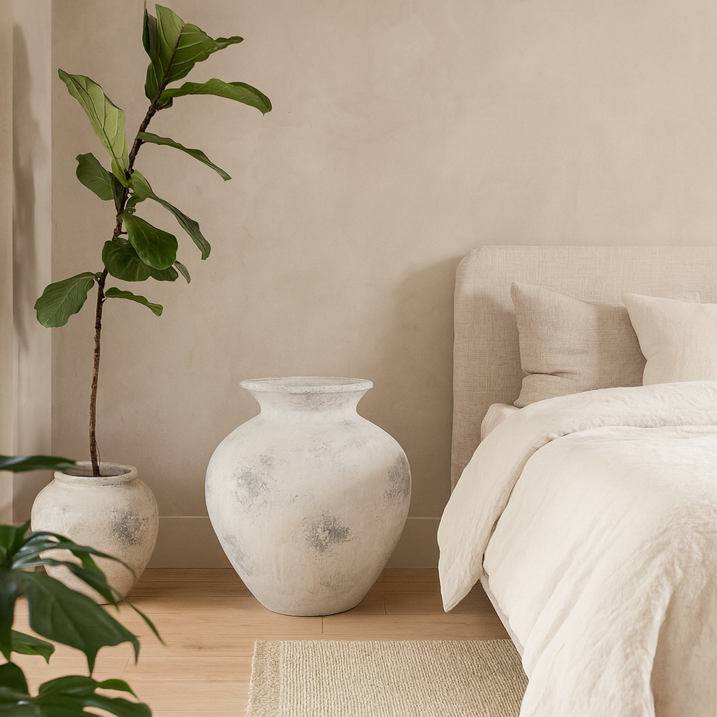 Mossbrook Large Antique White and Grey Stonewarae Vase