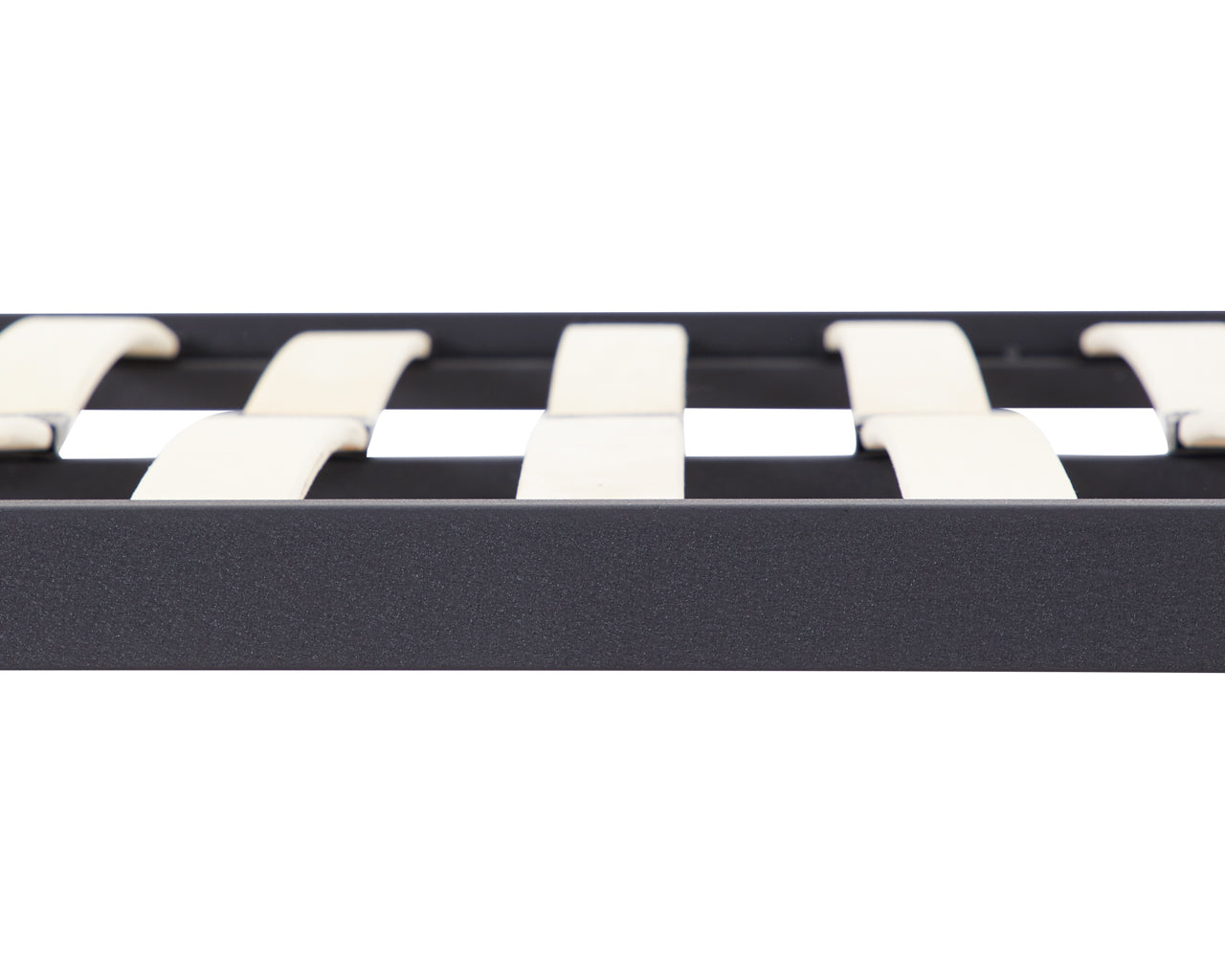 Gently curved sprung slats provide supportive comfort, forming a dependable base for everyday use. The sturdy frame suits a range of interiors, from modern rooms to more traditional spaces. Styled simply or layered with texture, it creates a sleeping space that feels practical, expressive, and quietly assured.
