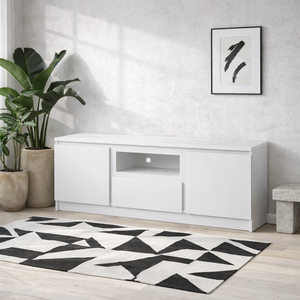 Hemingway 136cm White Wooden 2 Door 1 Drawer Wide TV Cabinet
