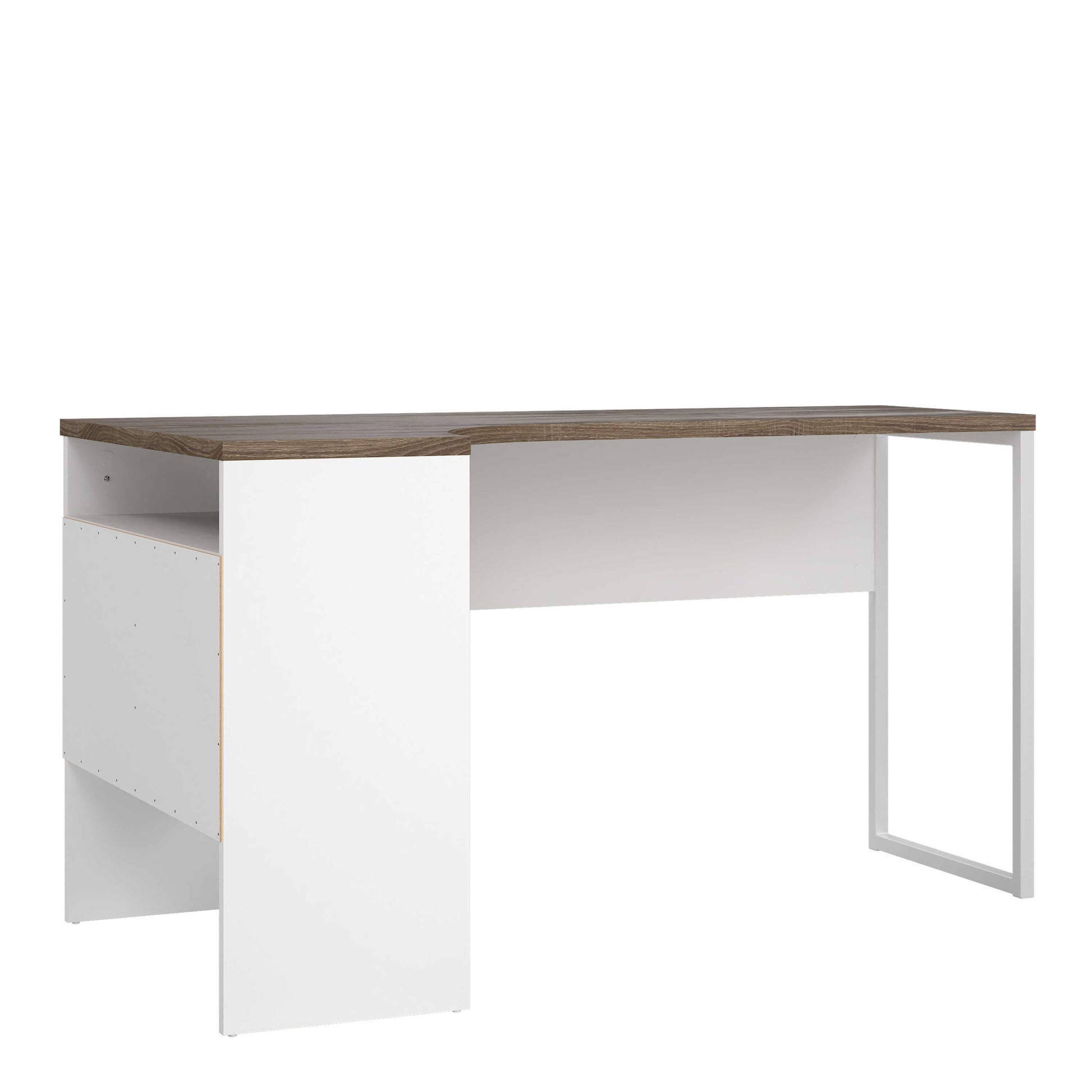 Designed to make the most of compact layouts, this corner desk blends crisp white with warm truffle oak for a calm, modern workspace. Clean lines and a considered form allow it to sit neatly into corners, helping rooms feel organised and visually balanced.
