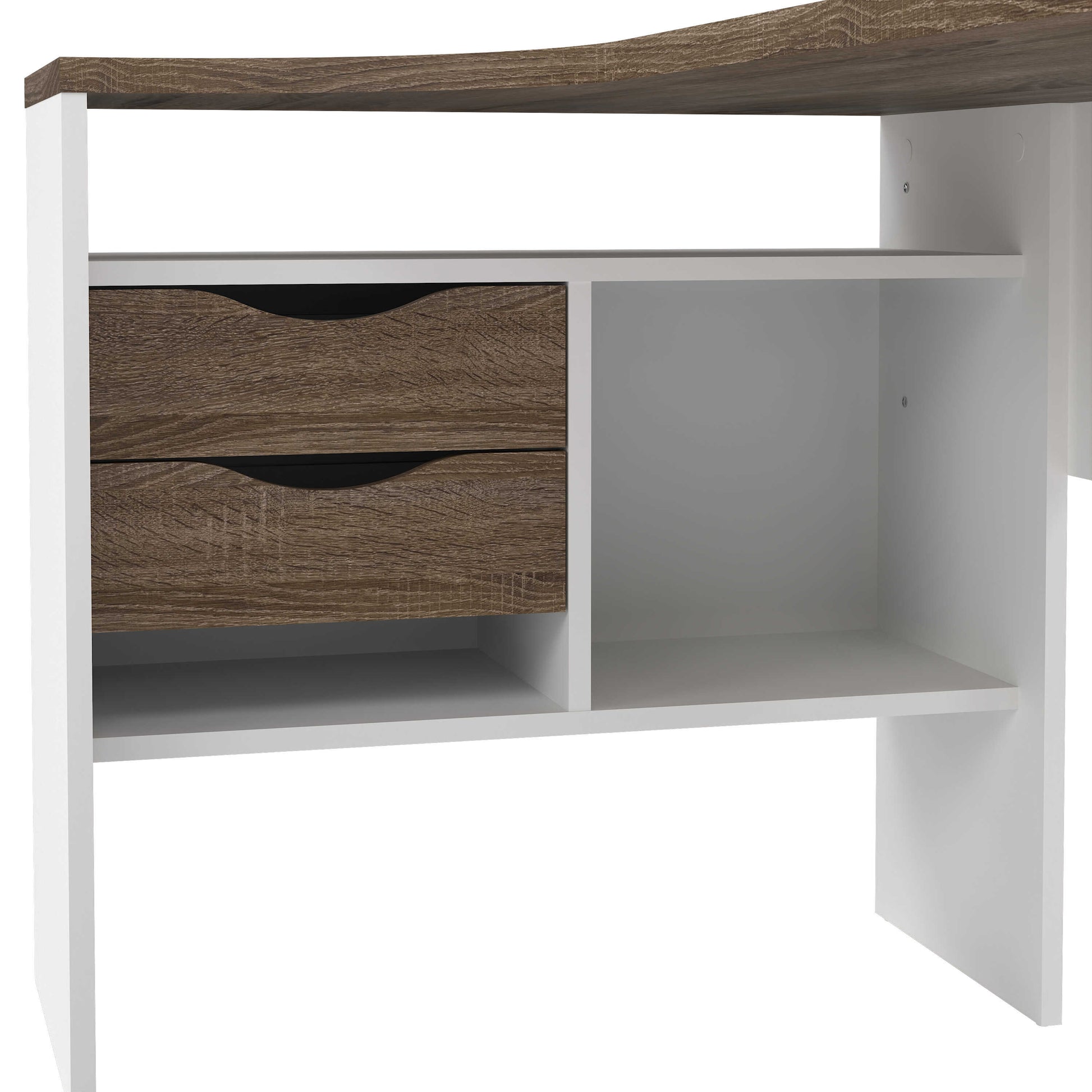 Billabong White and Truffle Oak Corner Office Desk 2 Drawers