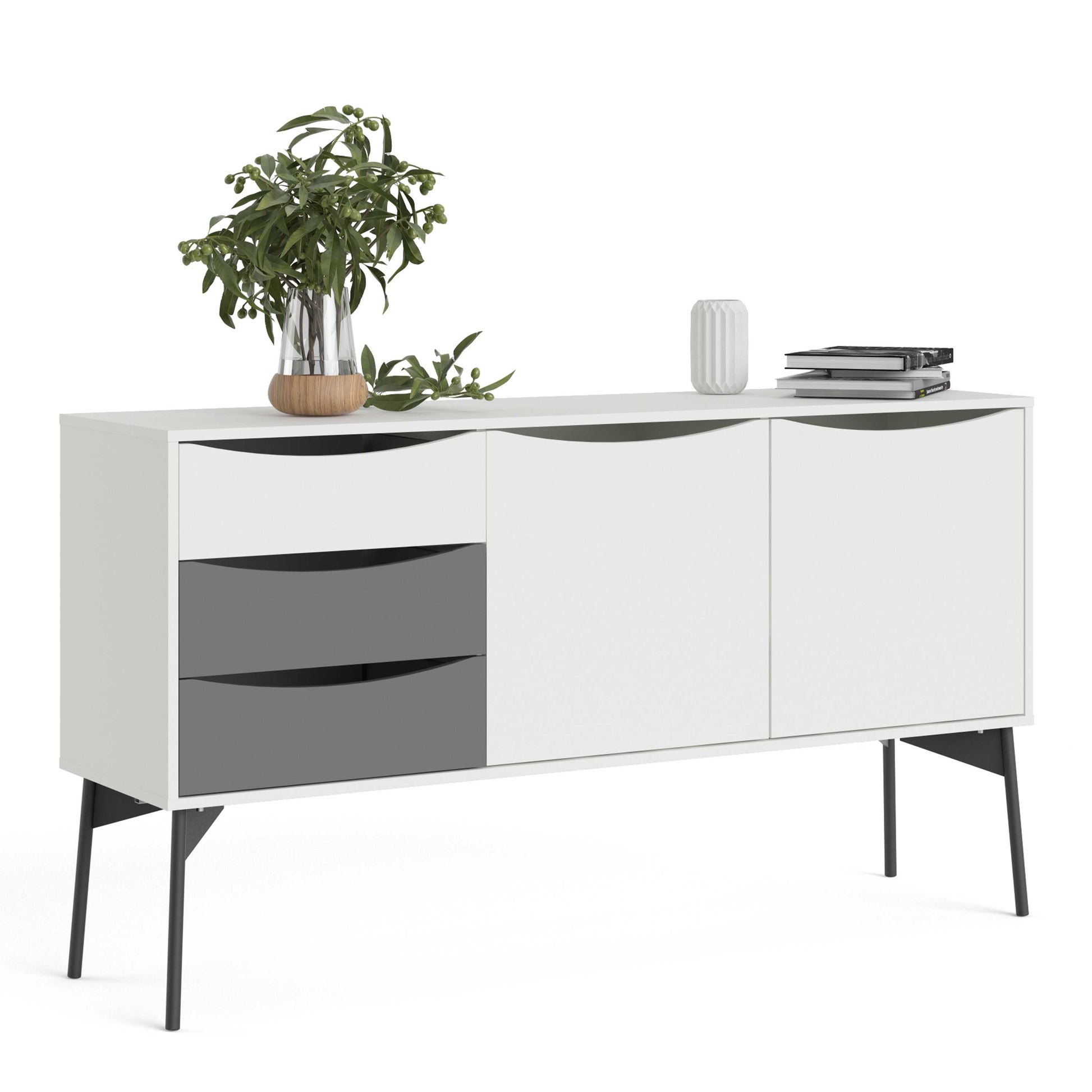 Nordborg Grey and White Wooden Sideboard 2 Doors 3 Drawers