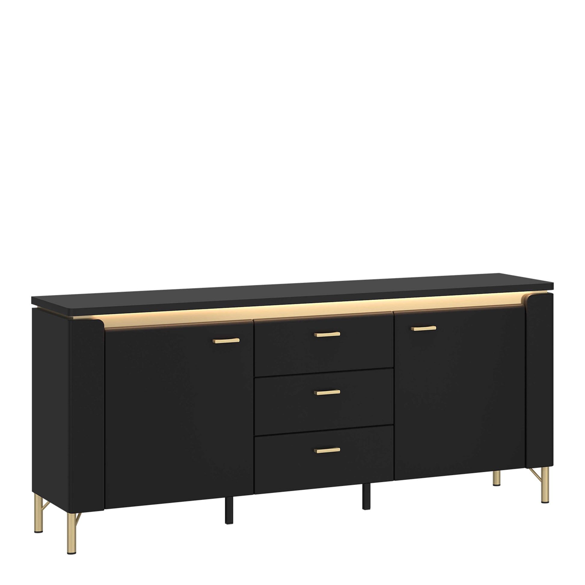 Introduce confident contrast into the room with a sideboard that blends dark drama and warm metallic detail. A matt black finish is elevated with gold accents, creating a modern statement that feels bold yet refined. Integrated LED lighting adds depth and atmosphere, giving the piece a calm glow that enhances its architectural form.