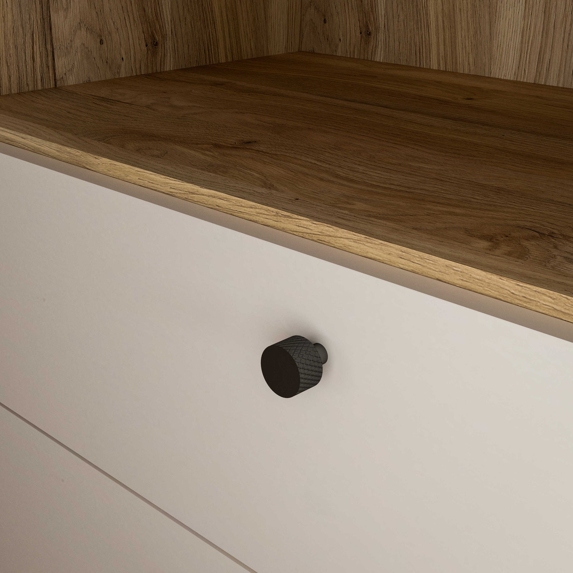 This entertainment unit brings a warm industrial calm into the living room, blending a soft cream tone with natural oak accents for a look that feels grounded and inviting. The long balanced silhouette offers plenty of surface space for larger screens, making it a thoughtful choice for relaxed evenings, weekend films and slow afternoons on the sofa. Subtle industrial influences add depth without overpowering the room, creating a modern organic focal point that works beautifully in both minimalist and rustic inspired interiors.