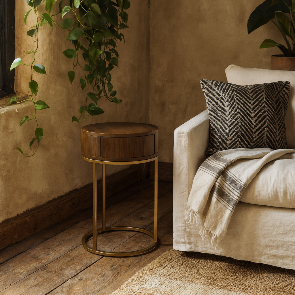 Perfect for both classic and contemporary interiors, the Padua bedside table brings warmth and sophistication to a bedroom or living space. Its circular form, elegant materials, and compact proportions make it a versatile piece that complements a range of styles.