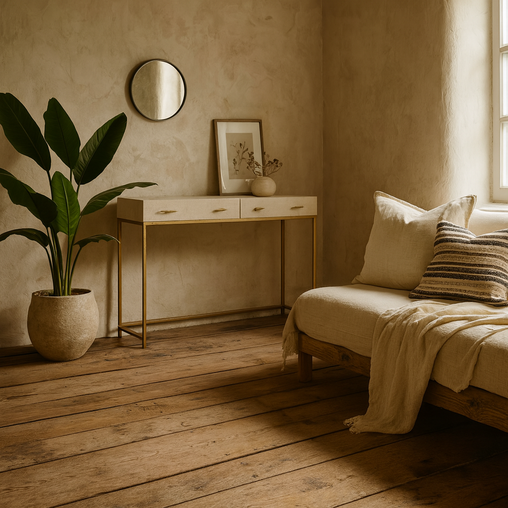 Perfect for entryways or living spaces, the Urbino console table balances practicality with timeless style. Its combination of tactile finish, clean lines, and golden accents makes it a versatile piece that elevates both modern and classic rooms with quiet elegance.
