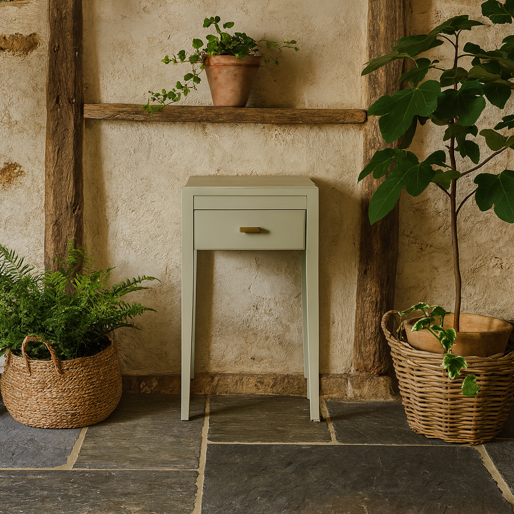 Perfect beside the bed, in a hallway, or tucked into a cosy nook, it adds just enough function without crowding the space. Style it with a linen shade lamp and a ceramic vase for that effortless, lived-in feel — simple, calming, and beautifully made for slow, mindful living.
