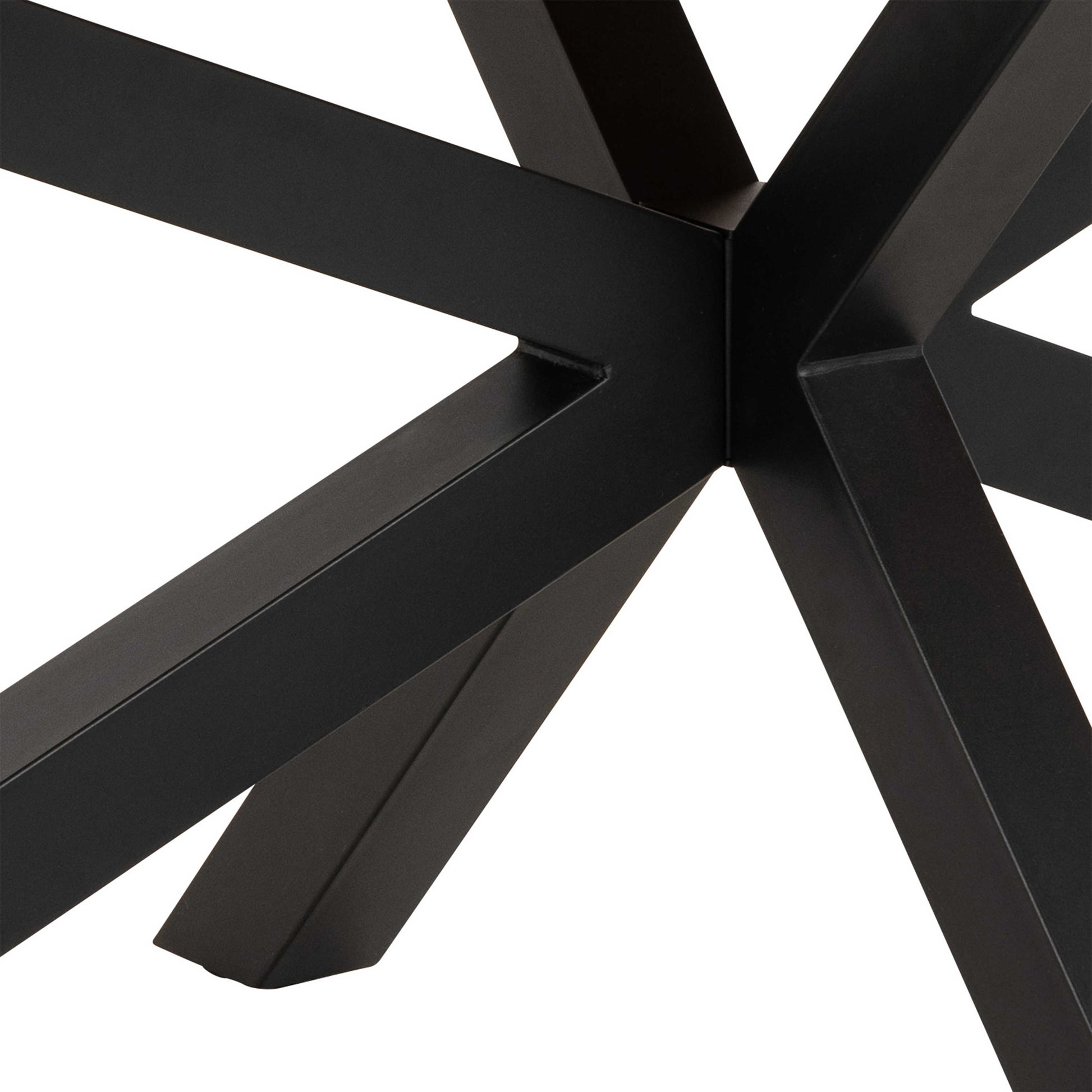 A sculptural black cross base grounds the design with quiet strength and modern structure, offering generous seating for up to ten people. Blending organic warmth with a confident architectural edge, this table becomes a stylish centrepiece for gatherings of all kinds.