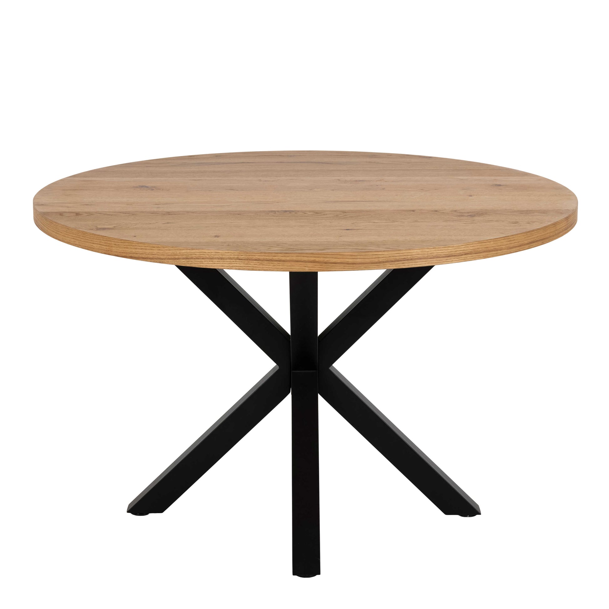 Perth 120cm Natural Oak Veneer Round Dining Table Industrial Black Metal Legs