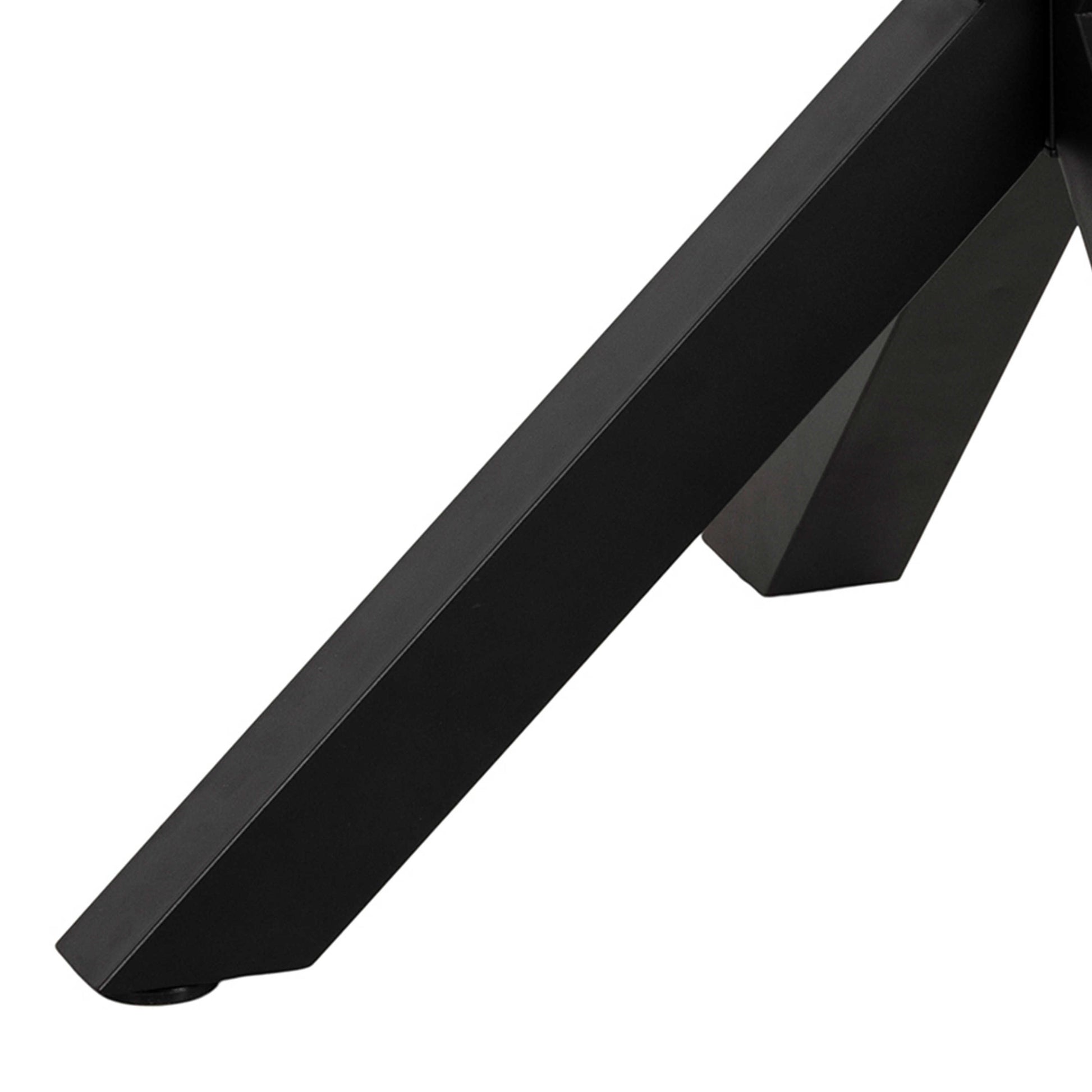 A matt black cross base grounds the design with quiet sculptural strength, offering comfortable seating for four while adding a bold modern contrast to the warm timber tones above. Easy to clean and simple to assemble, this piece blends everyday practicality with expressive style, becoming a striking centrepiece for relaxed modern living.