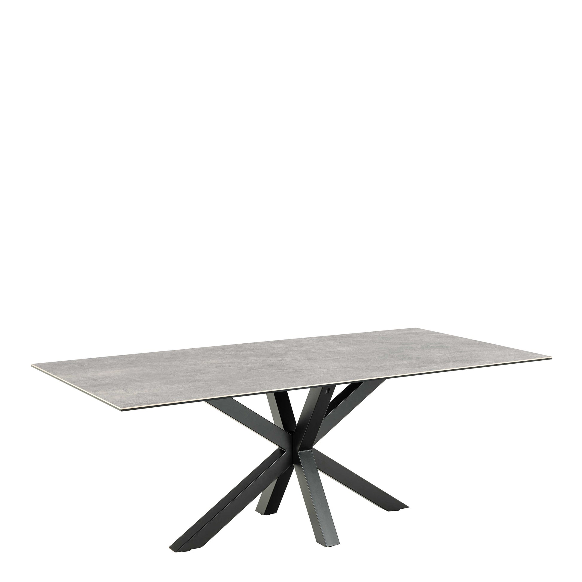 Perth 200cm Grey Ceramic Rectangular Dining Table Industrial Black Metal Legs