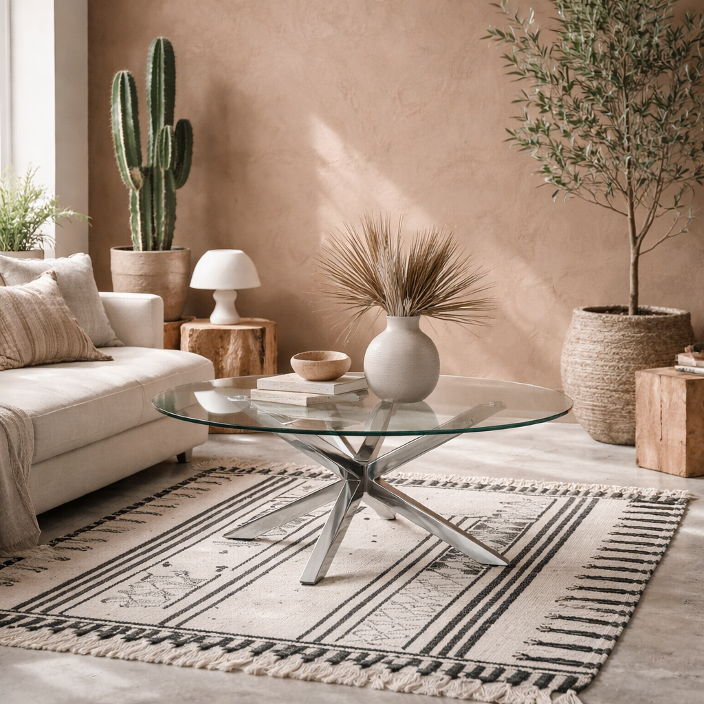 This coffee table brings a bright modern mood with its clear tempered glass top, adding a relaxed hipster charm to sleek contemporary interiors. The transparent surface keeps the room feeling open and airy, offering an inviting spot for books, candles, or morning coffee. Its clean outline blends easily with soft neutrals, bold accents, or minimalist decor, giving the space a calm and expressive presence.