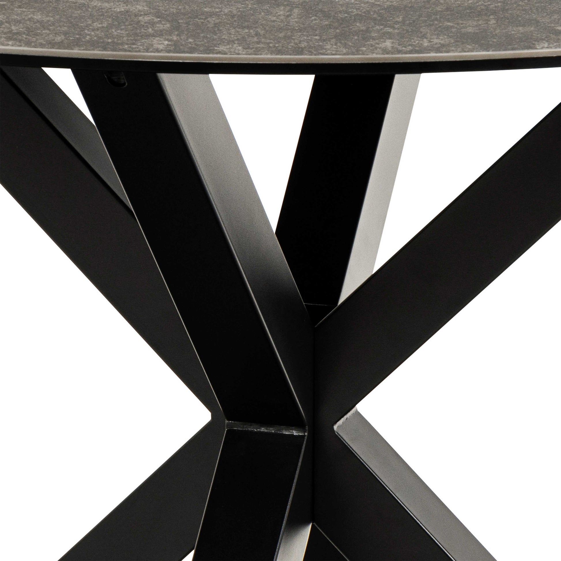 Perth 119cm Black Ceramic Round Dining Table Industrial Black Metal Legs