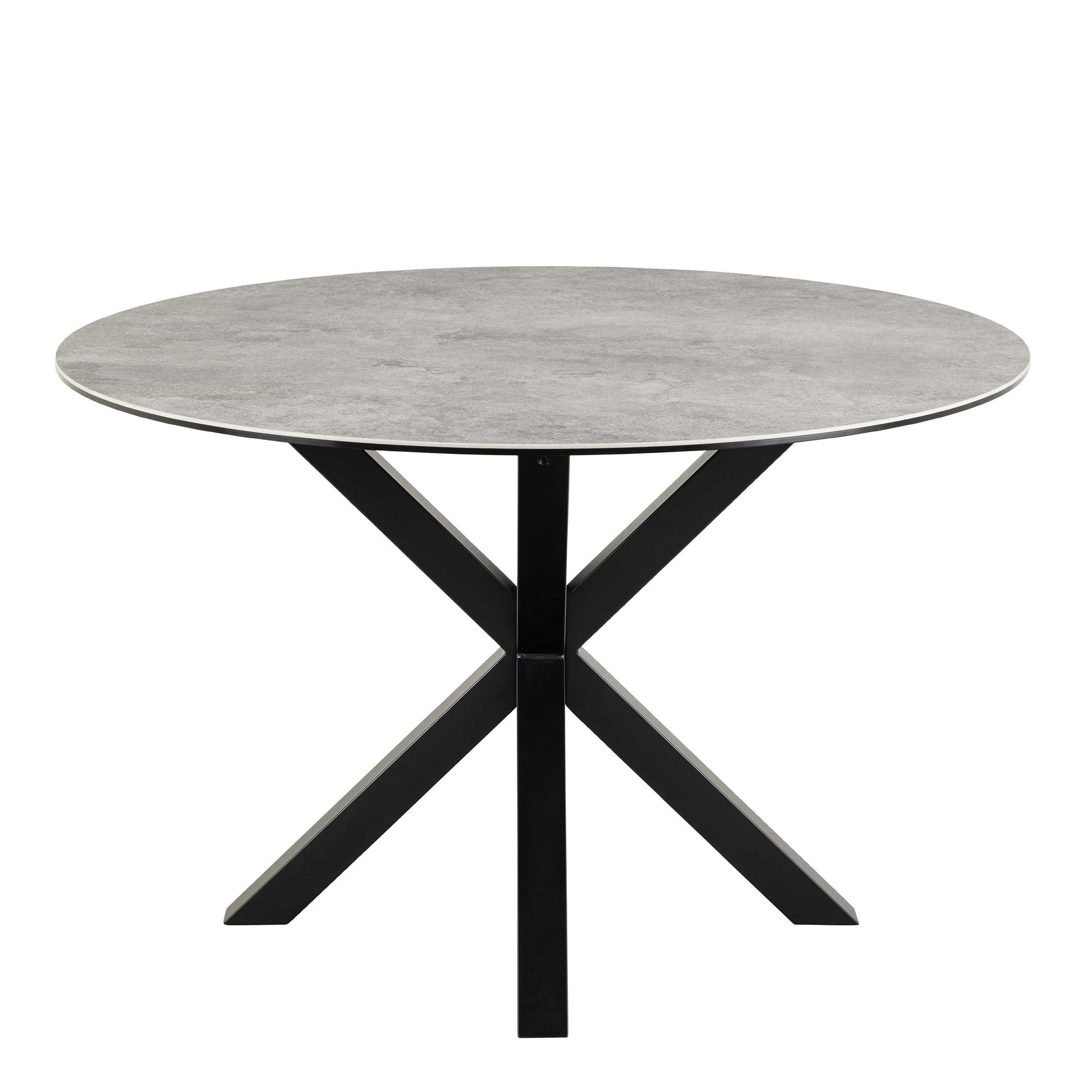 Perth 119cm Grey Ceramic Round Dining Table Industrial Black Metal Legs