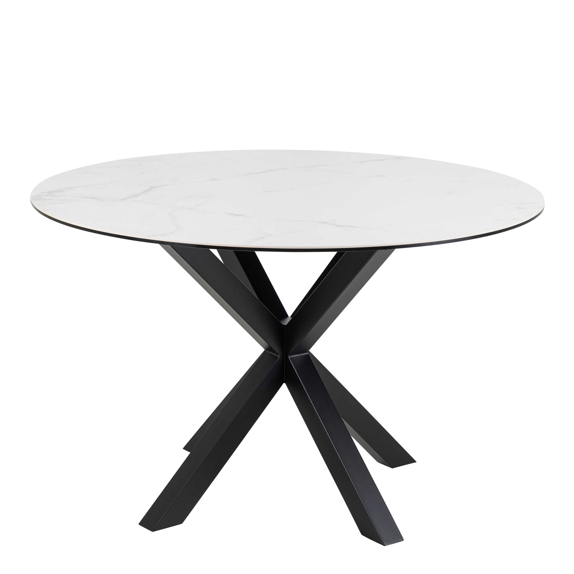 Perth 119cm White Ceramic Round Dining Table Industrial Black Metal Legs