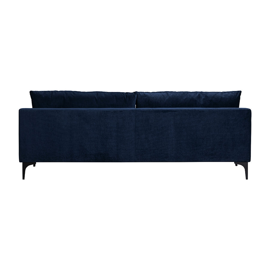 Refined yet deeply inviting, this piece embodies the perfect harmony of comfort and contemporary design. The midnight blue velvet upholstery adds richness and depth, while the slim black metal legs lend a touch of modern sophistication. Its generous cushions and sleek silhouette make it both stylish and effortlessly cosy.