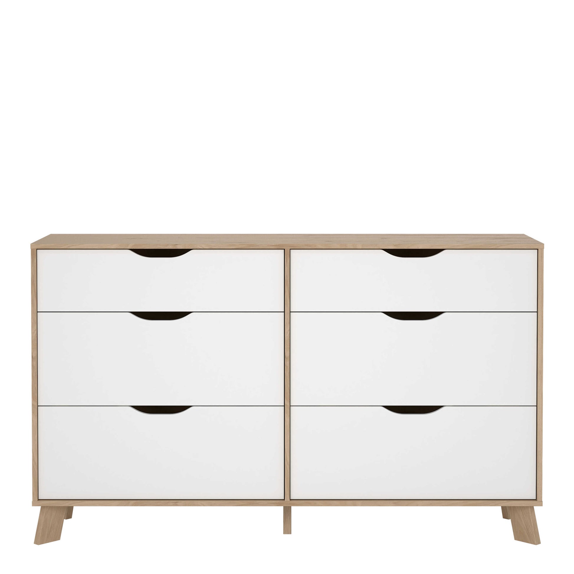 Lira Jackson Hickory Oak Wood and White 6 Drawers Double Dresser
