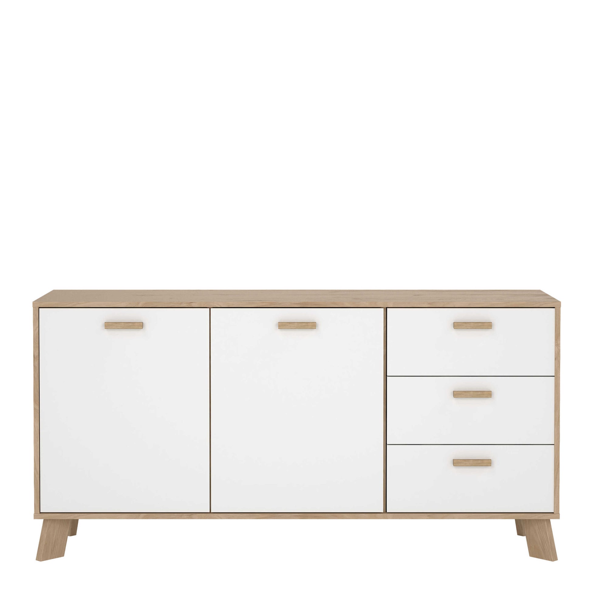 Hobro White and Natural Oak Wood Sideboard 2 Doors 3 Drawers