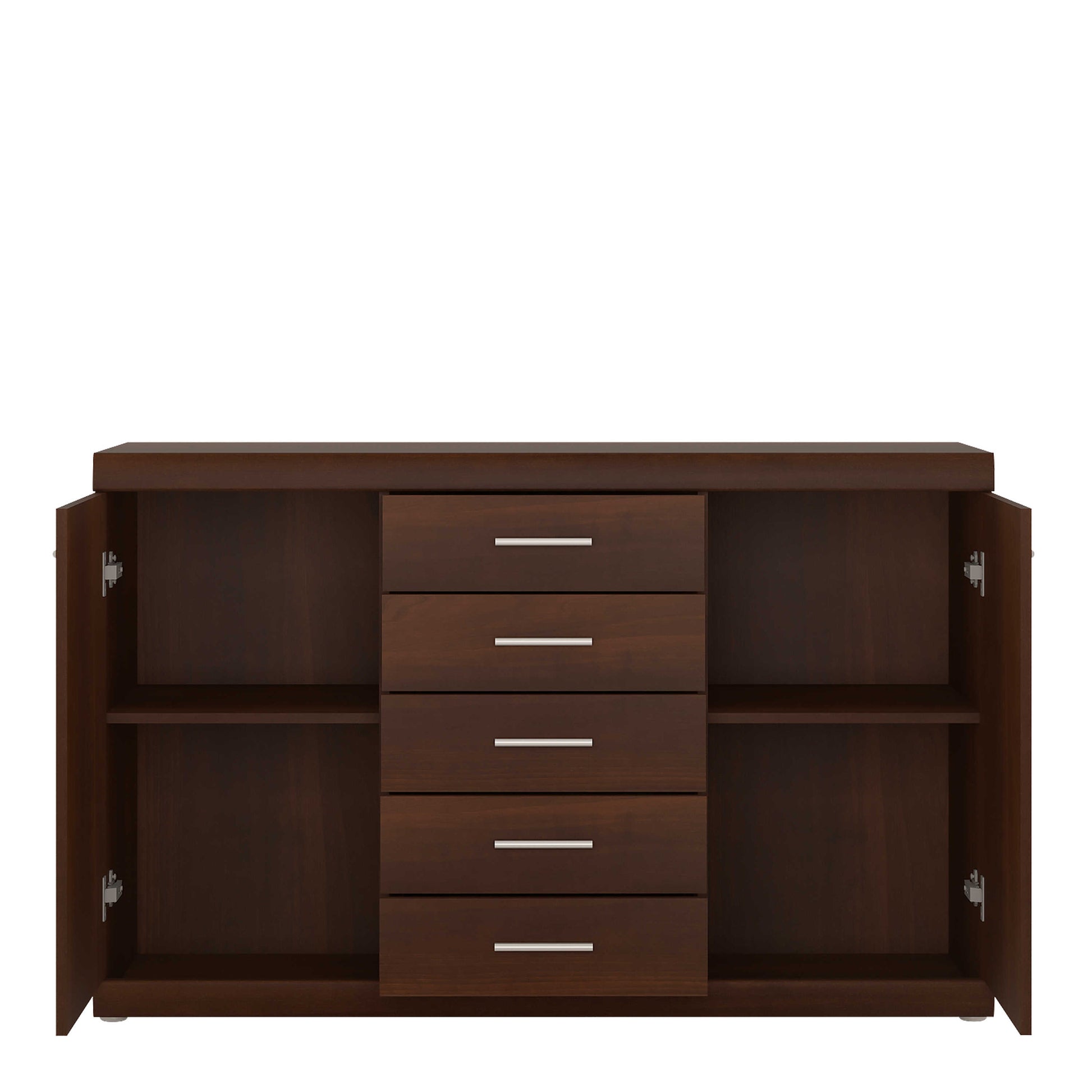 Sonderborg Wide Dark Mahogany Wood Veneer Sideboard 2 Doors 5 Drawers