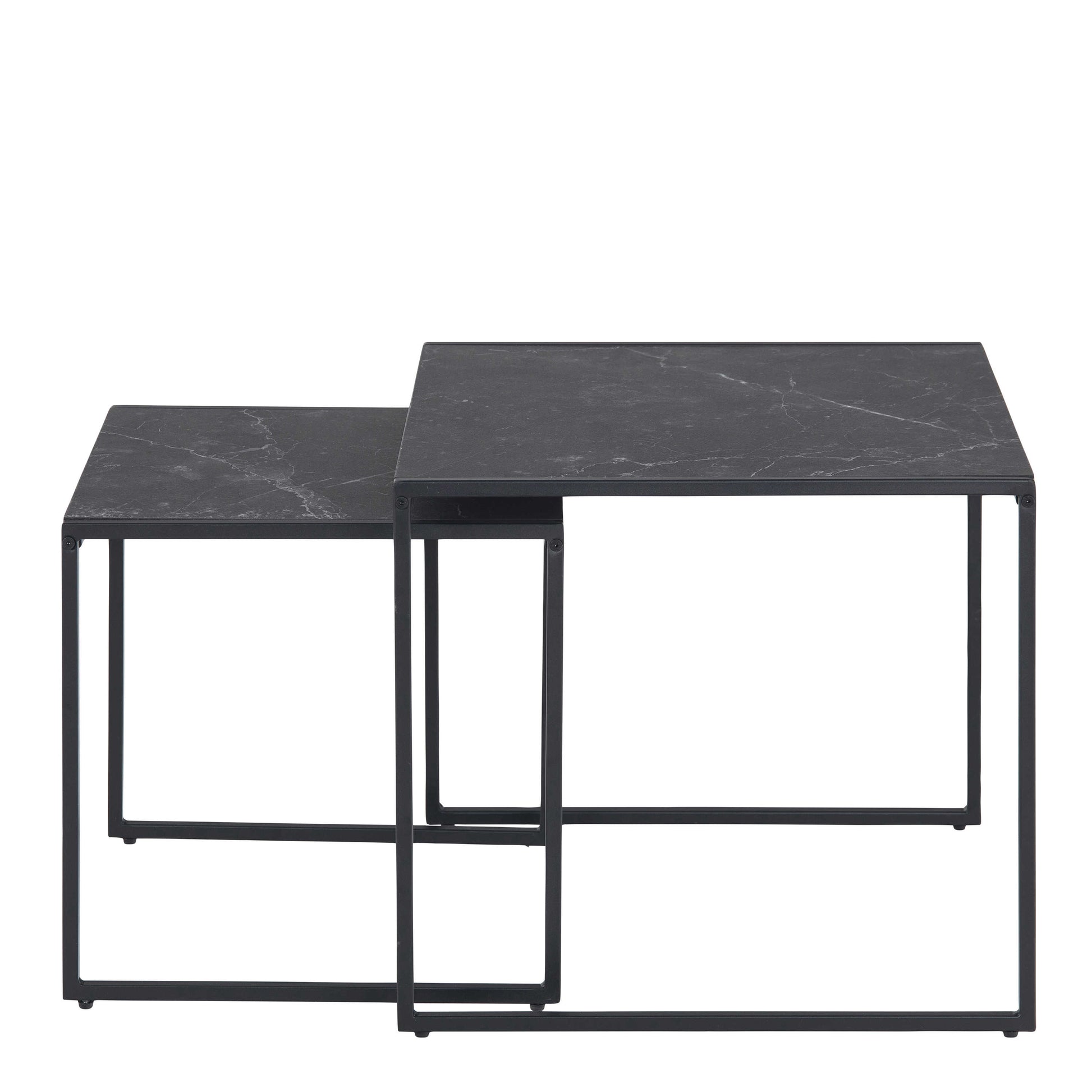 Set of 2 Holbaeck Black Marble Effect Square Nesting Coffee Tables