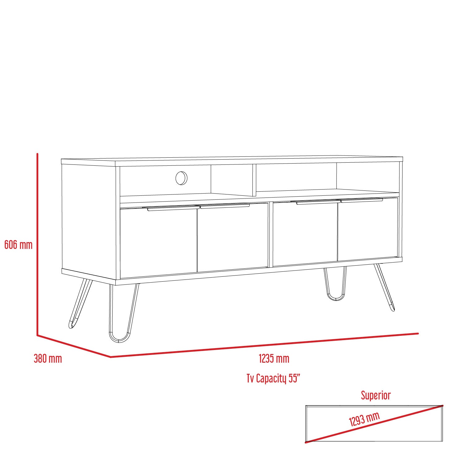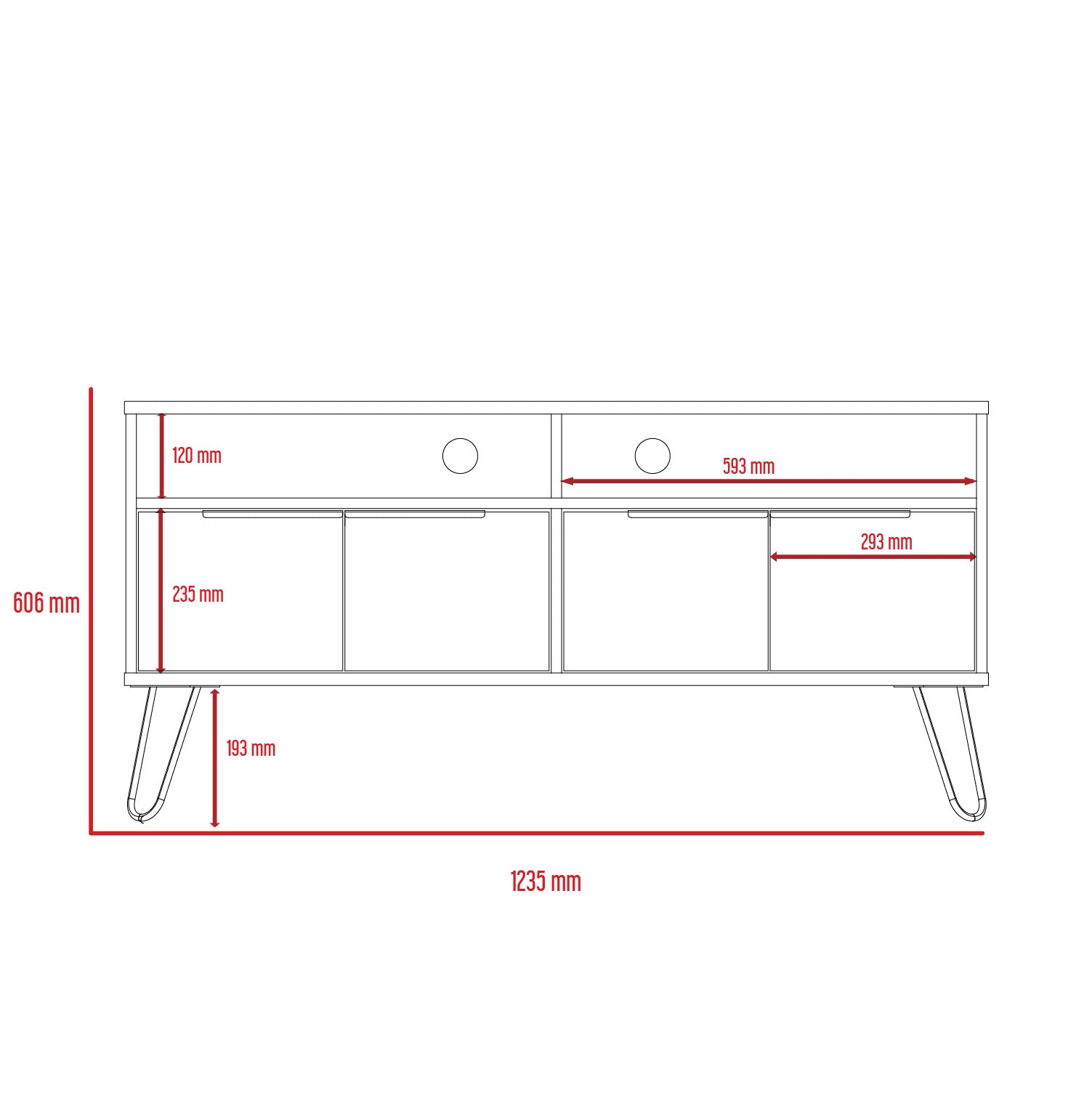 The Kranidi TV unit brings effortless structure to entertainment spaces. Designed for screens up to 55 inches, it features a bleached oak body and contrasting matte grey doors. Black pull handles and sleek hairpin legs provide visual balance and industrial edge.