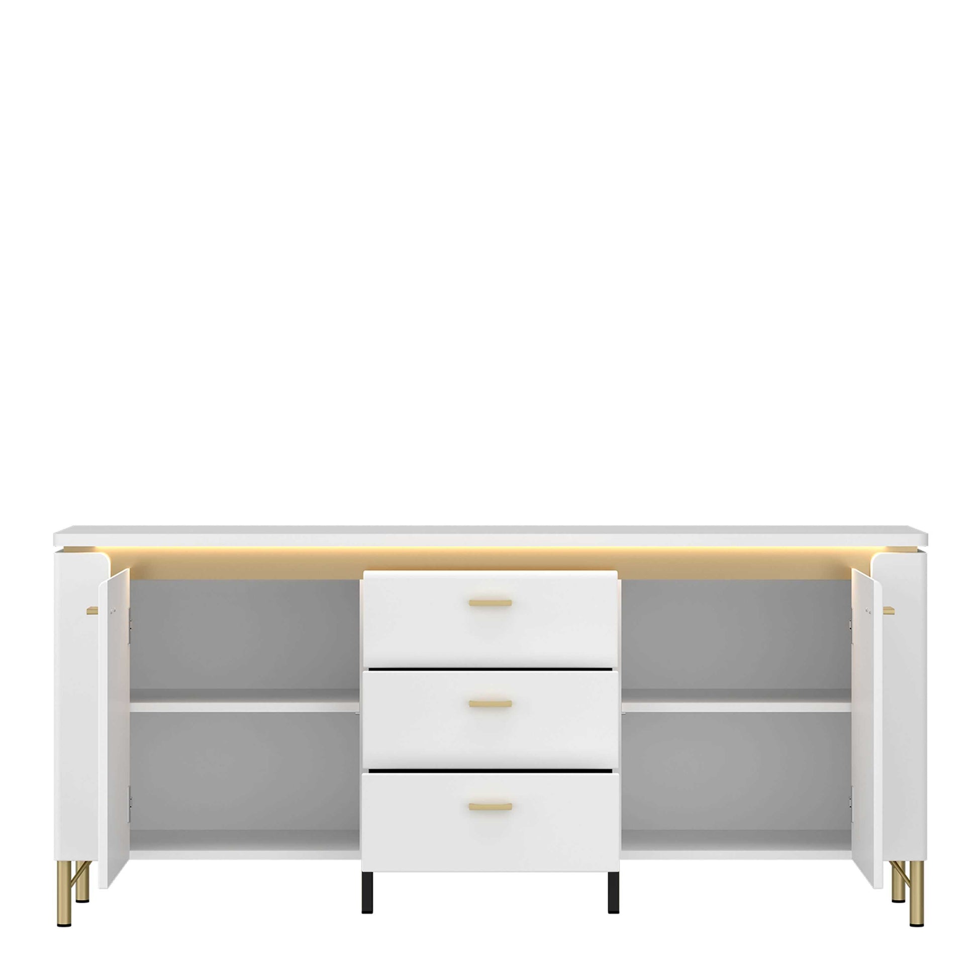 Maribo White TV Cabinet 2 Door 3 Drawer Gloss Gold Metal Legs