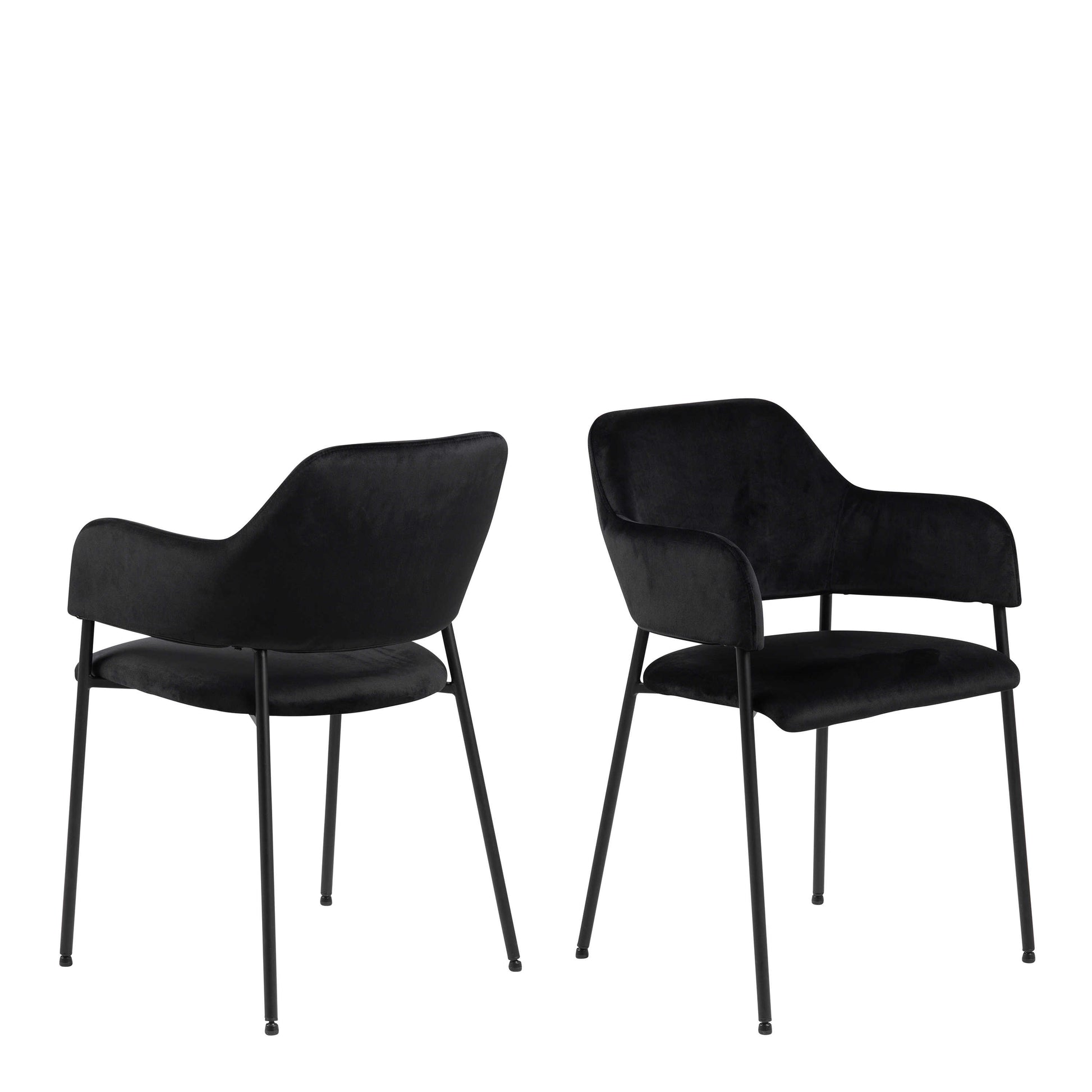 These dining chairs bring contemporary comfort with a confident edge. Soft black Dublin fabric creates a plush feel, while armrests and an open back shape add character and ease. The design feels elegant yet relaxed, making it an effortless fit for modern dining spaces that value style and everyday comfort.