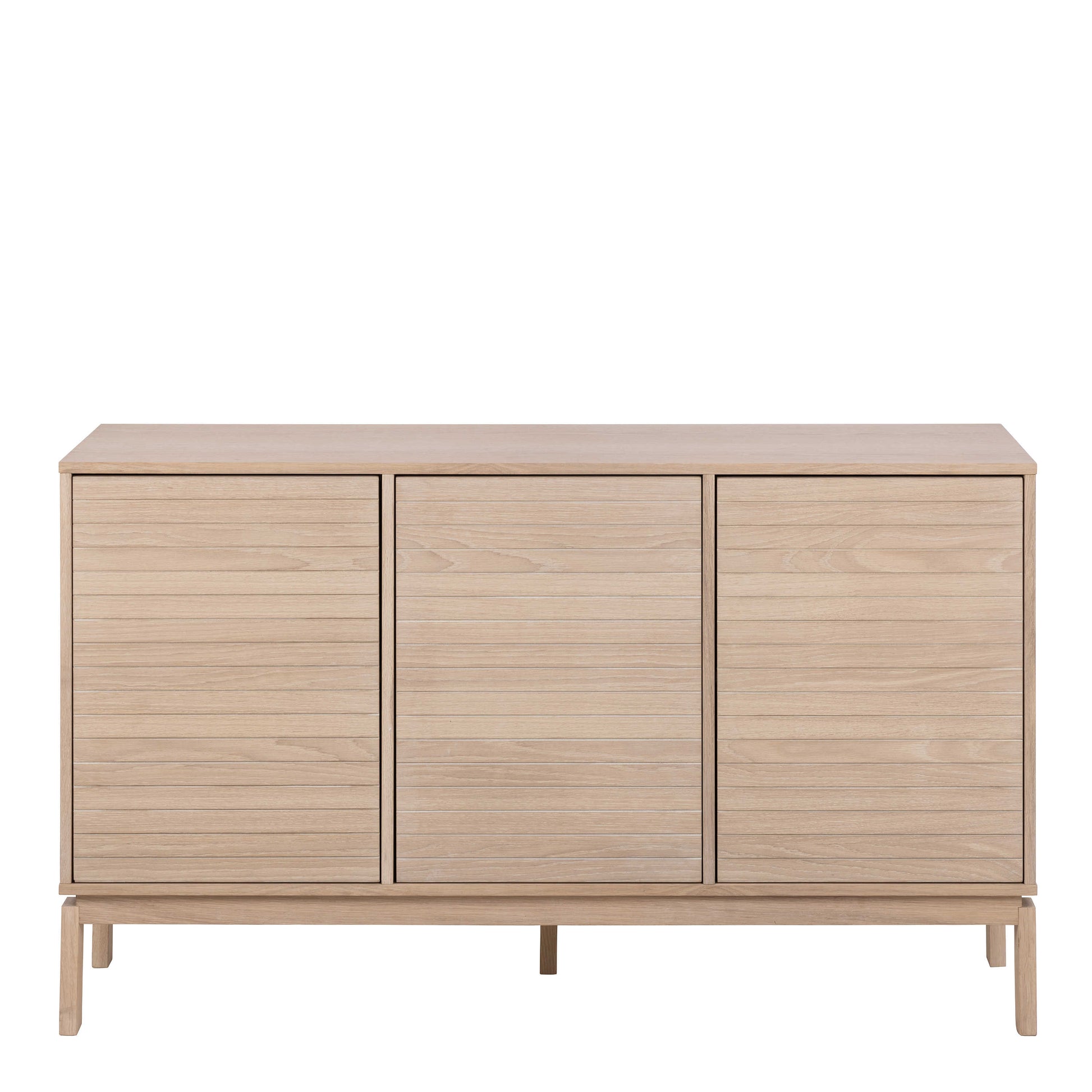 Nakskov White Oak Wood Panelled 3 Door Sideboard in White Oak