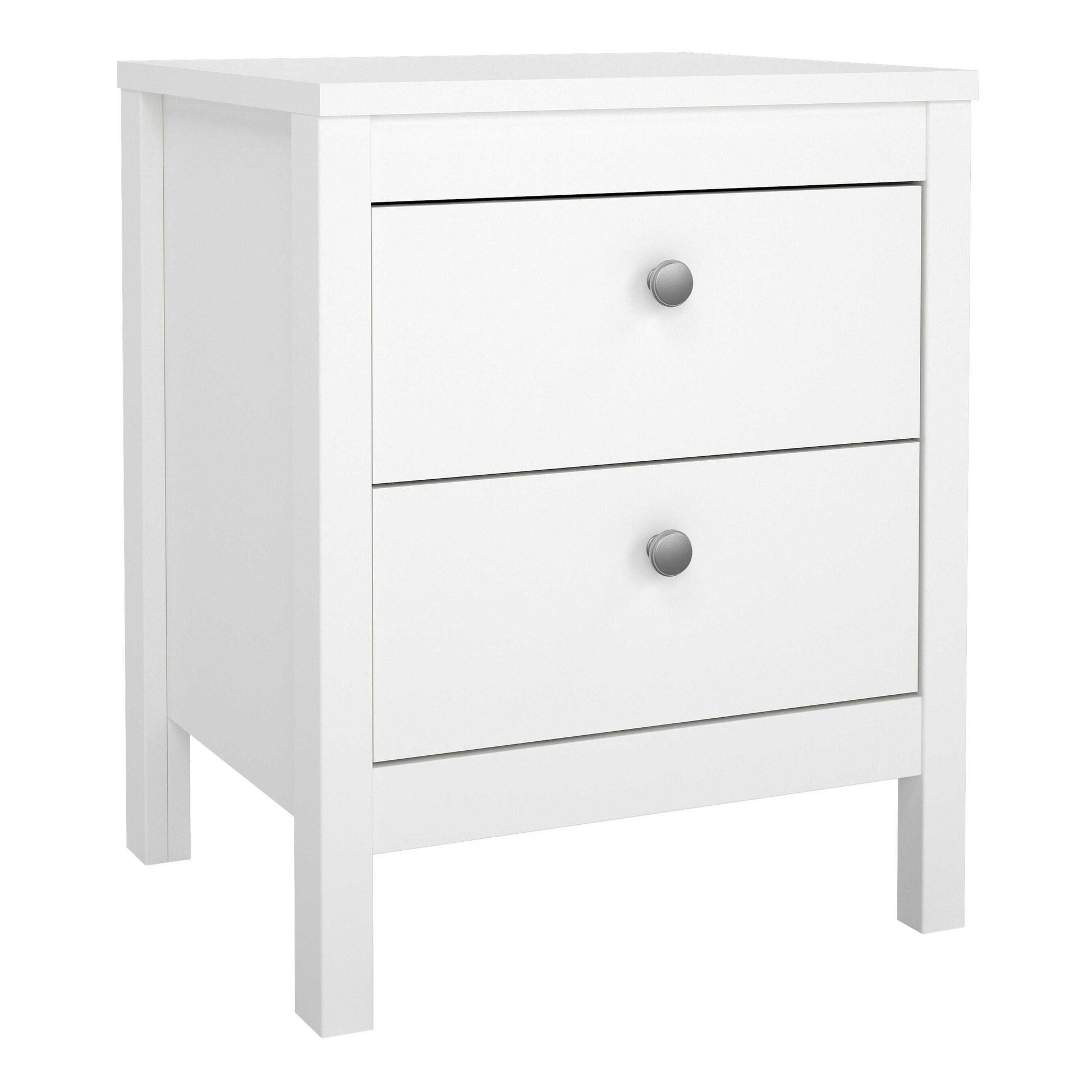 Bringing a calm, refined feel to the bedroom, this bedside table pairs elegant proportions with a clean modern look. The white finish keeps the design light and versatile, while simple plastic handles add a subtle contemporary detail. With two drawers, this bedside table offers practical storage for night time essentials without overpowering the space.