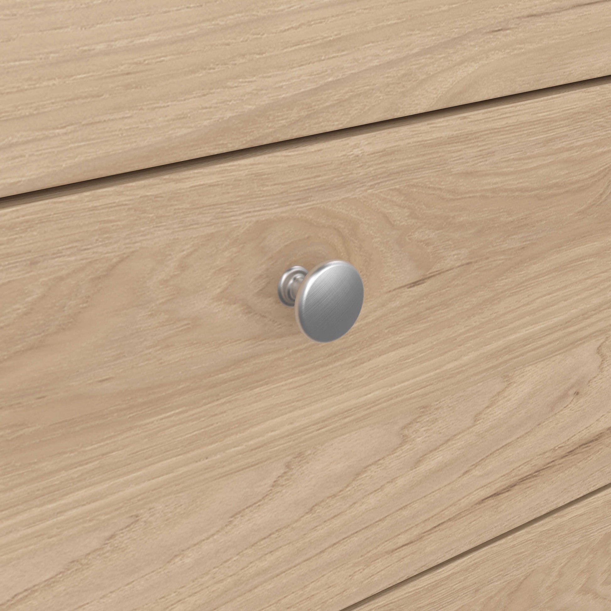 This chest of drawers brings a calm modern warmth to the bedroom with its hickory oak look and confident, clean lined design. The natural tone adds depth without overpowering the space, creating a setting that feels relaxed, balanced and easy to live with. Metal handles introduce a subtle contemporary touch, keeping the overall look refined and intentional.