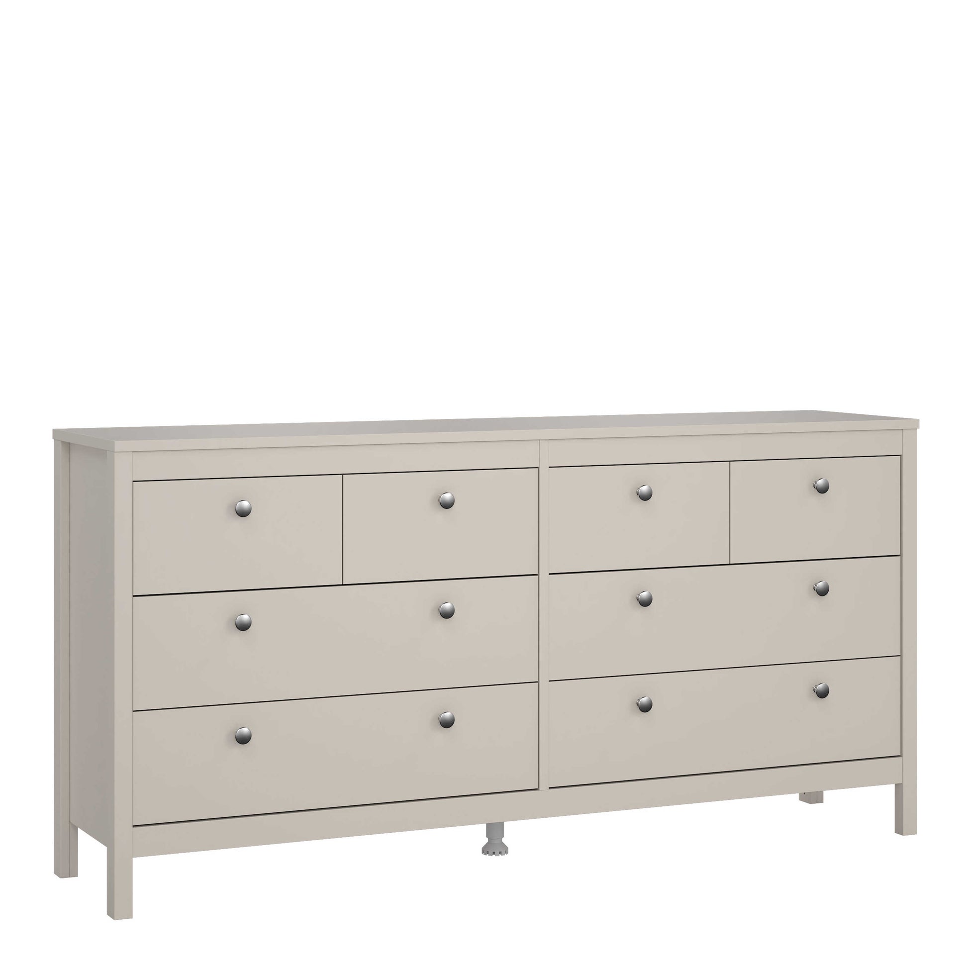 This double dresser brings a calm, modern mood with its soft cashmere finish and clean Scandinavian inspired lines. The look feels refined yet relaxed, adding quiet confidence to the room without overwhelming it. Its balanced proportions make it easy to place in both compact and more open spaces, while the top surface offers a natural spot for plants, artwork or personal touches.