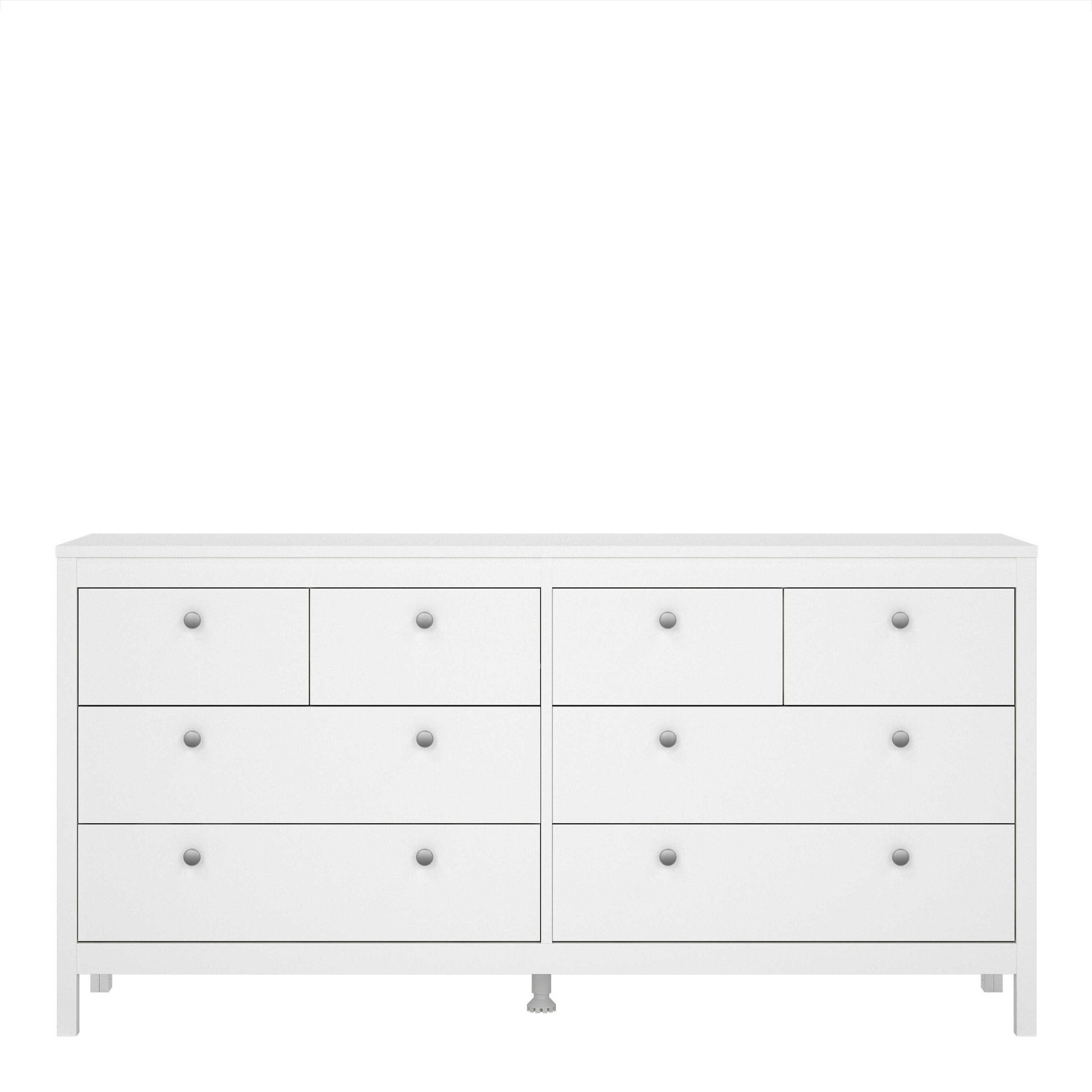 Bringing balance and order to the bedroom, this chest of drawers offers a refined approach to everyday storage. The elegant form is finished in white, with simple plastic handles that keep the look clean and understated. With a generous four plus four drawer layout, this chest of drawers provides ample space for clothing and essentials while maintaining a calm, organised feel.