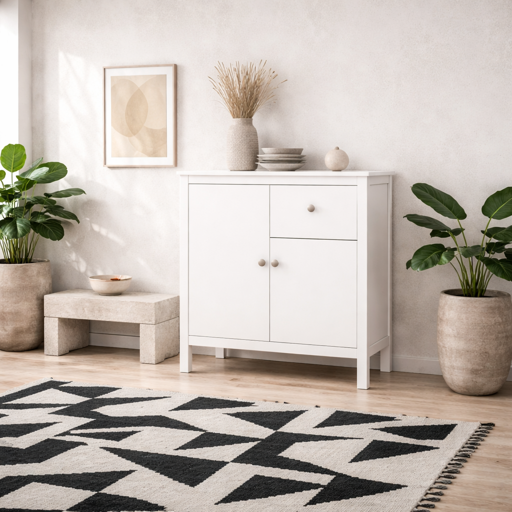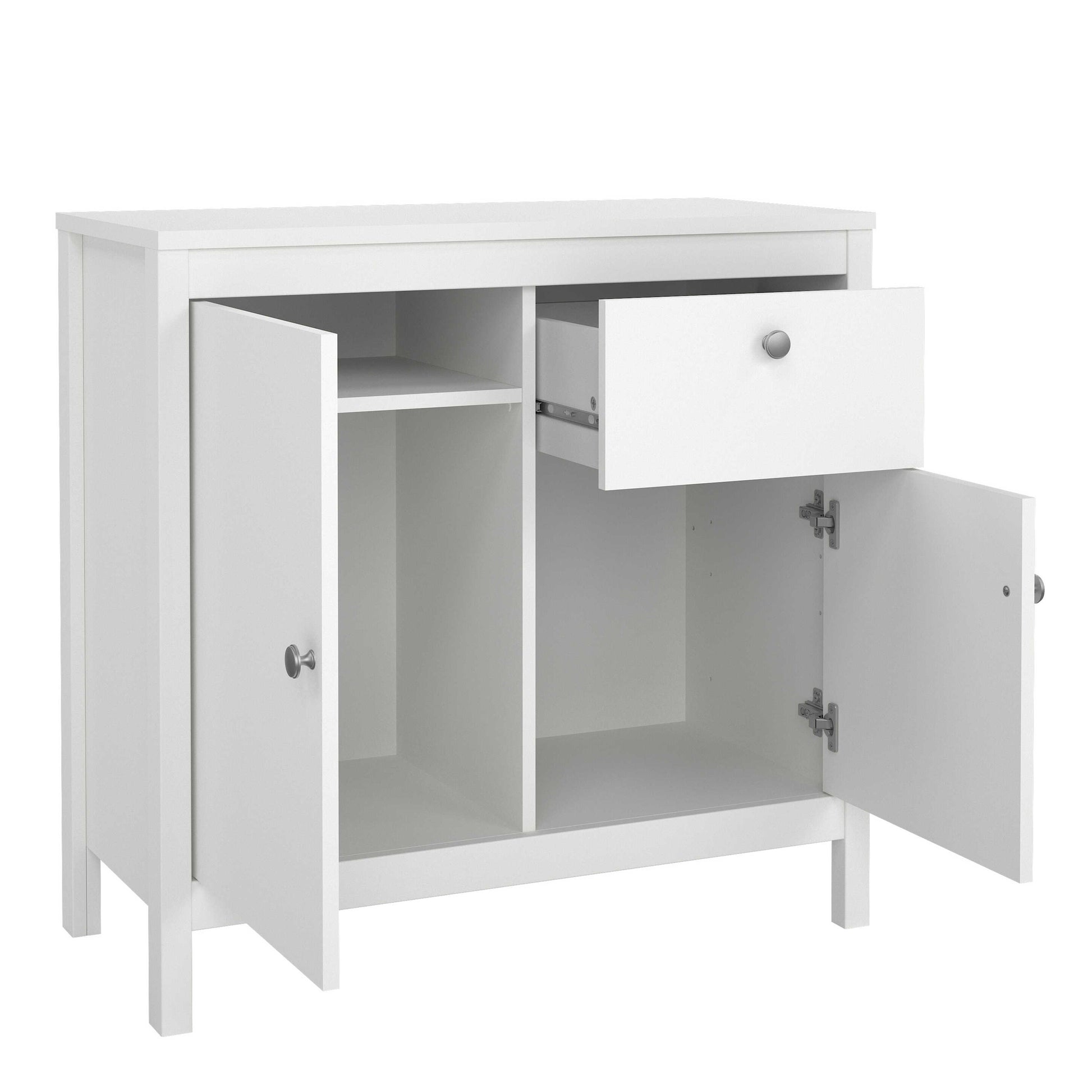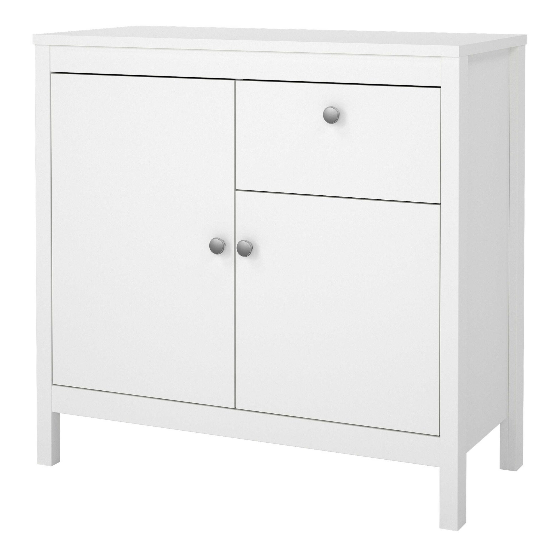 Gossmere White Wooden Storage Cupboard 2 Doors 1 Drawer Silver Handles