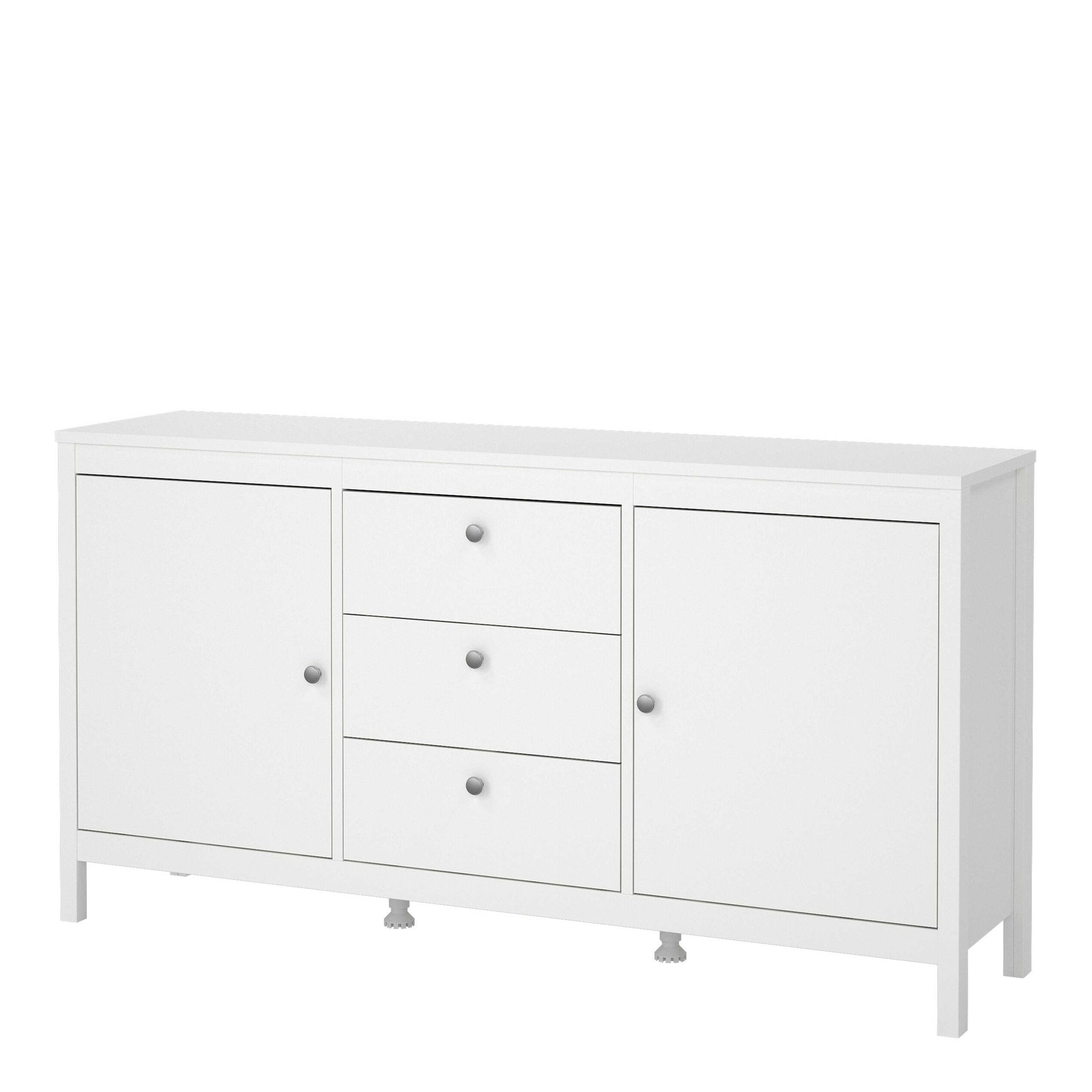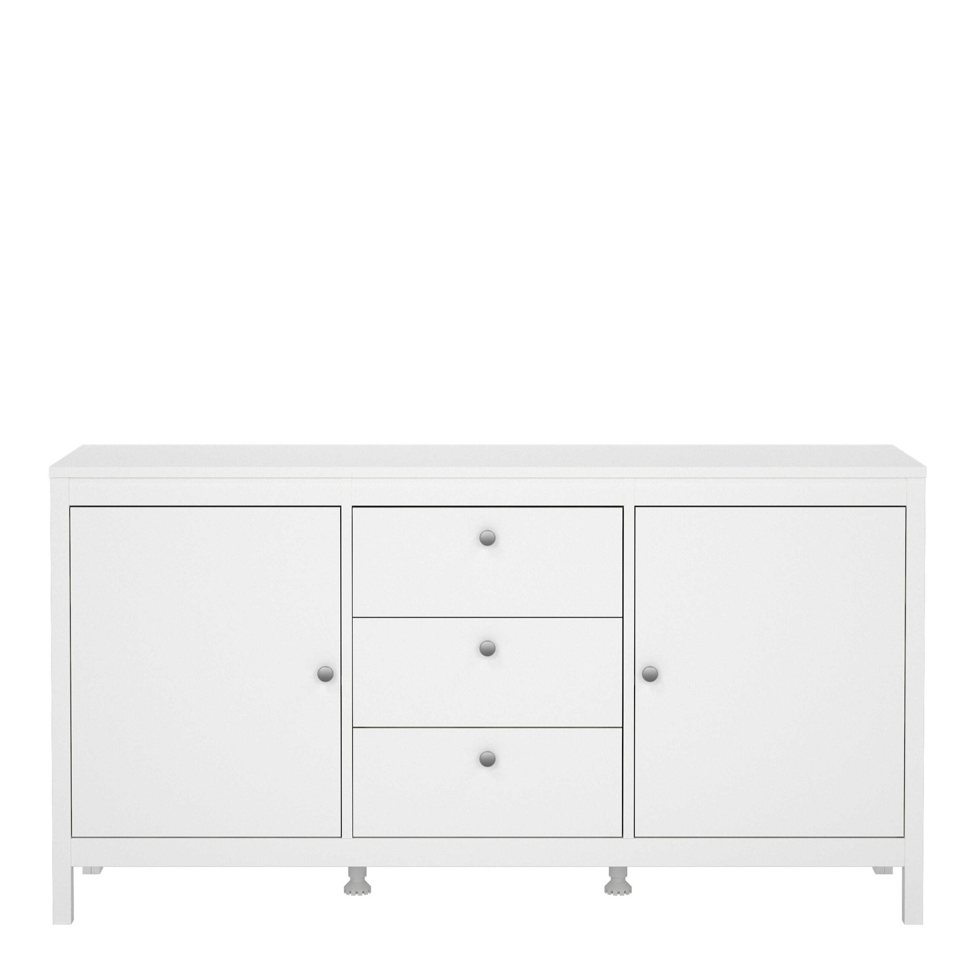 Gossmere White Wooden Sideboard 2 Doors 3 Drawers Silver Handles