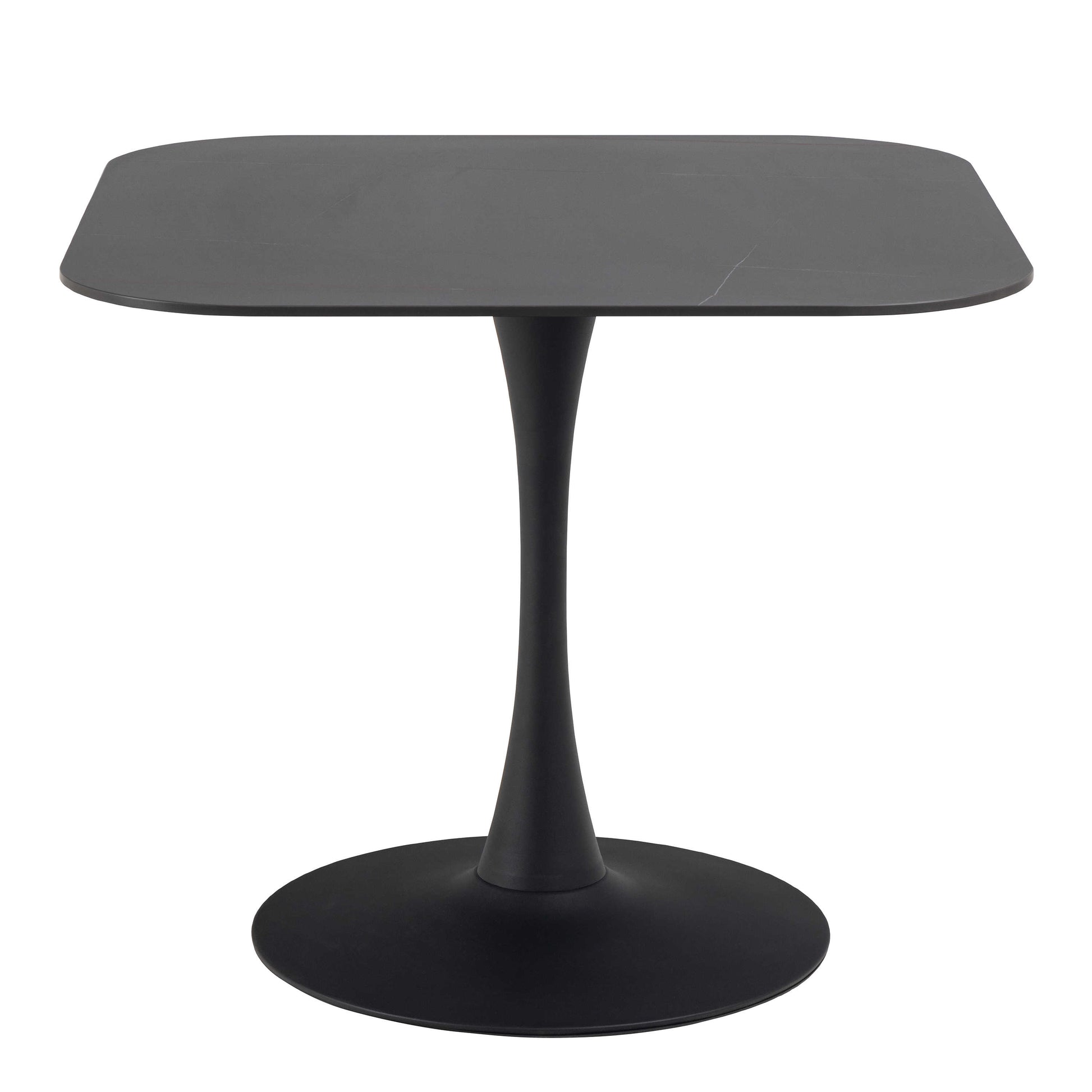 Bring an easy contemporary vibe to your room with this square table that pairs a matt black ceramic top with a smooth painted base for a grounded modern mood. The surface has subtle natural veining that gives the piece a calm refined character while still feeling relaxed enough for everyday living. It becomes an inviting spot for slow breakfasts, long chats or late evening snacks.