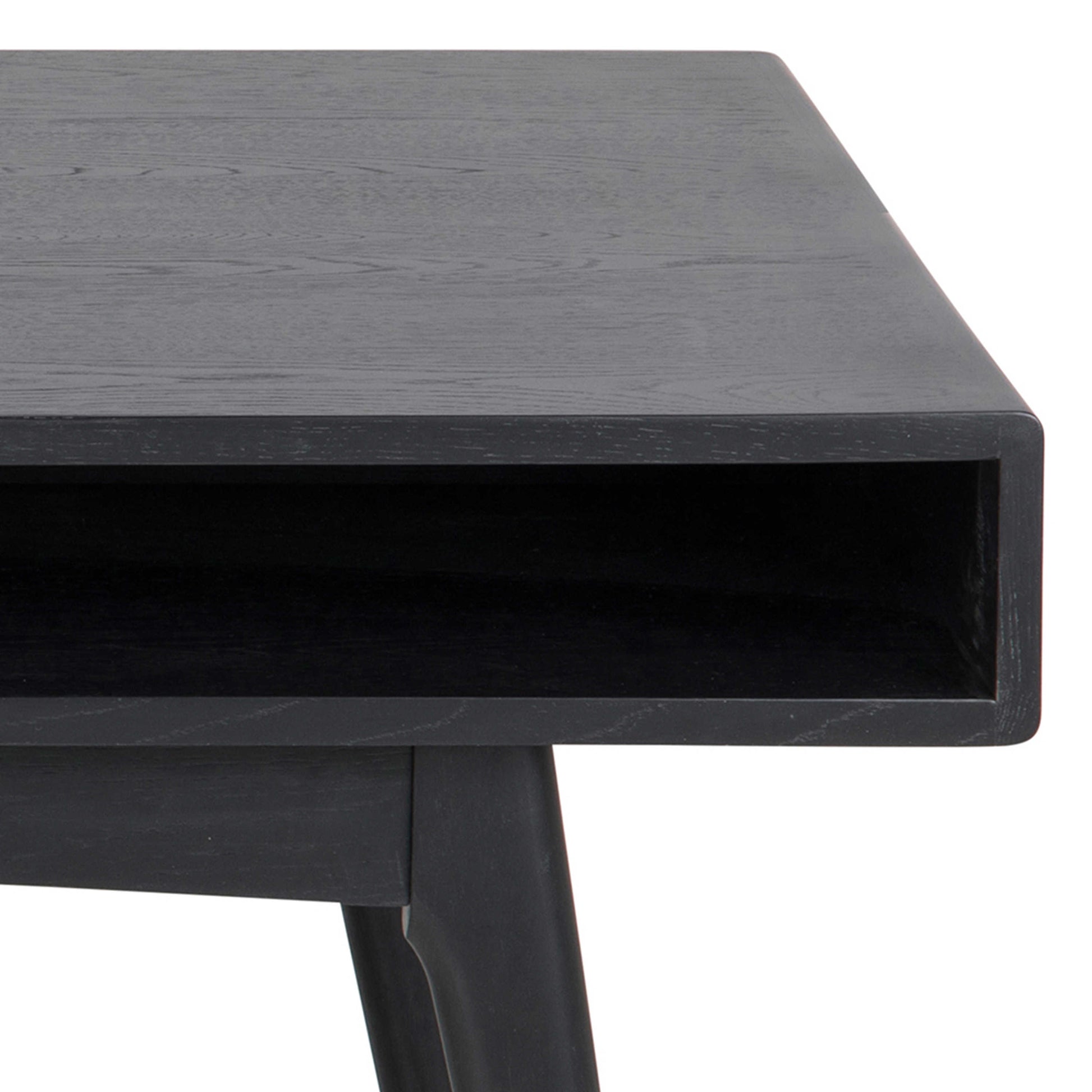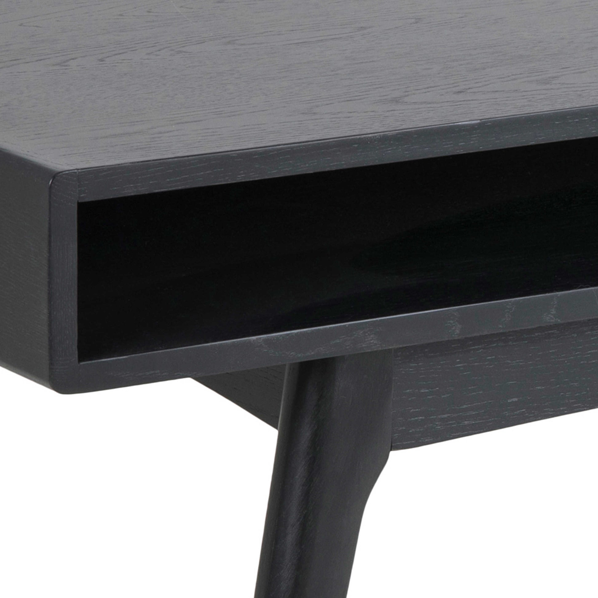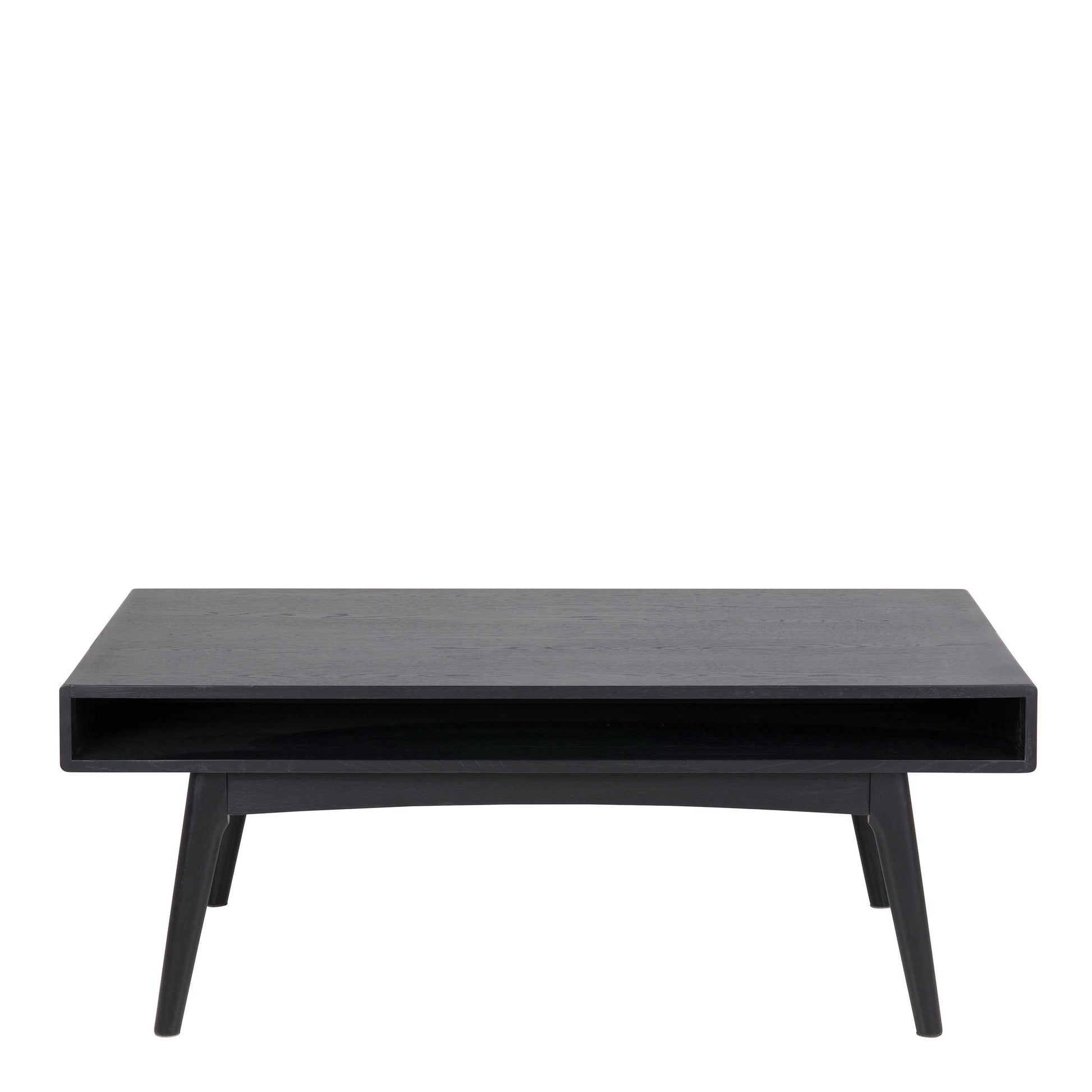 Bold and understated, this rectangular coffee table brings a dark, moody edge to modern living spaces. Finished in black pigmented oak veneer, it balances clean lines with softly rounded edges, giving the design a relaxed Nordic feel that still feels refined. The open compartment adds visual depth while keeping everyday items close without clutter.