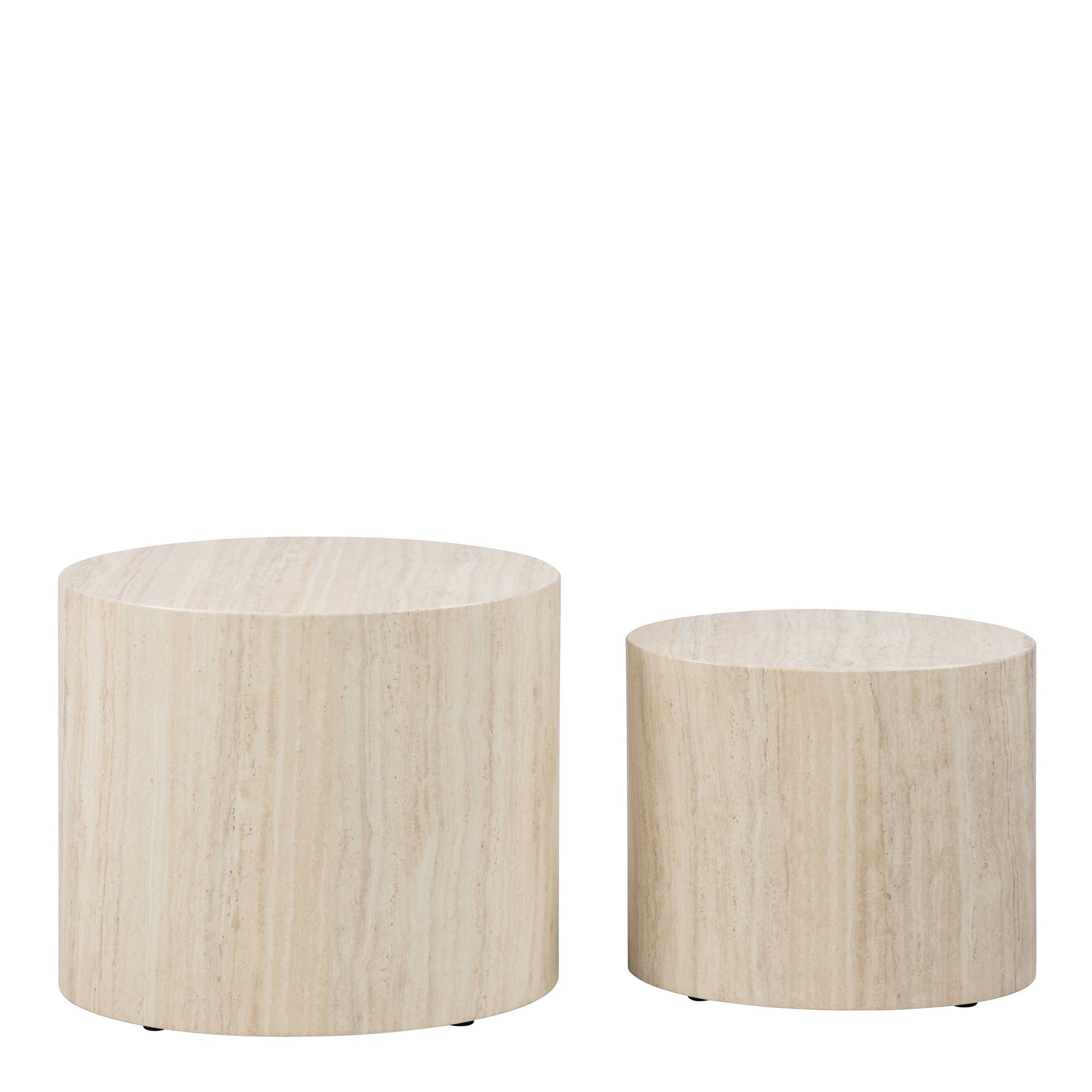 Bring a soft natural vibe to your living space with this set of two coffee tables that channel the warm character of travertine. The gentle oval shapes give the room an easy organic flow while the stone inspired finish adds a grounded collected feel. They settle in effortlessly, creating a relaxed corner for morning brews, afternoon reads or quiet evening moments.