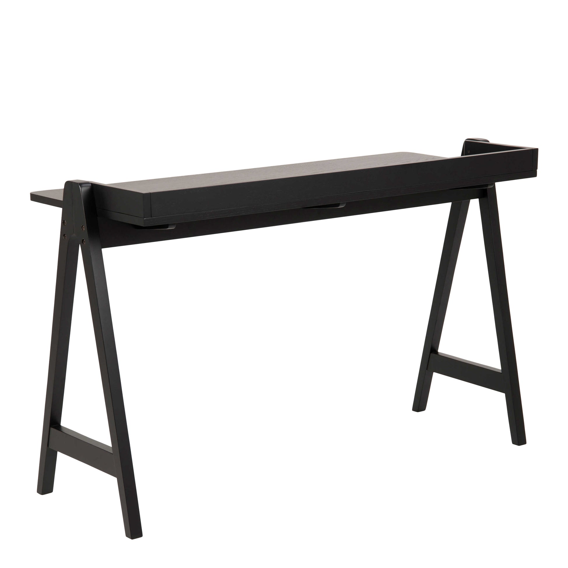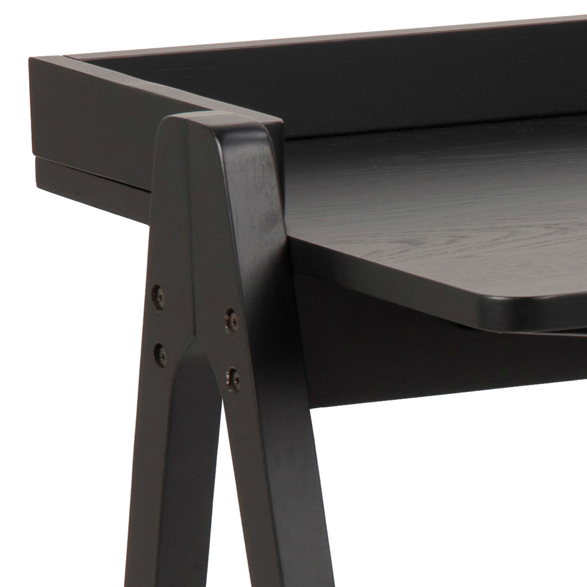 Bring a cool workshop inspired vibe to your room with this desk that pairs a matt black oak veneer top with a sturdy rubberwood frame. The raised edge keeps everything in place while adding a subtle crafted detail that feels both practical and laid back. It settles naturally into small offices or creative corners, giving you a grounded spot for work, ideas or quiet focus without overwhelming the space.
