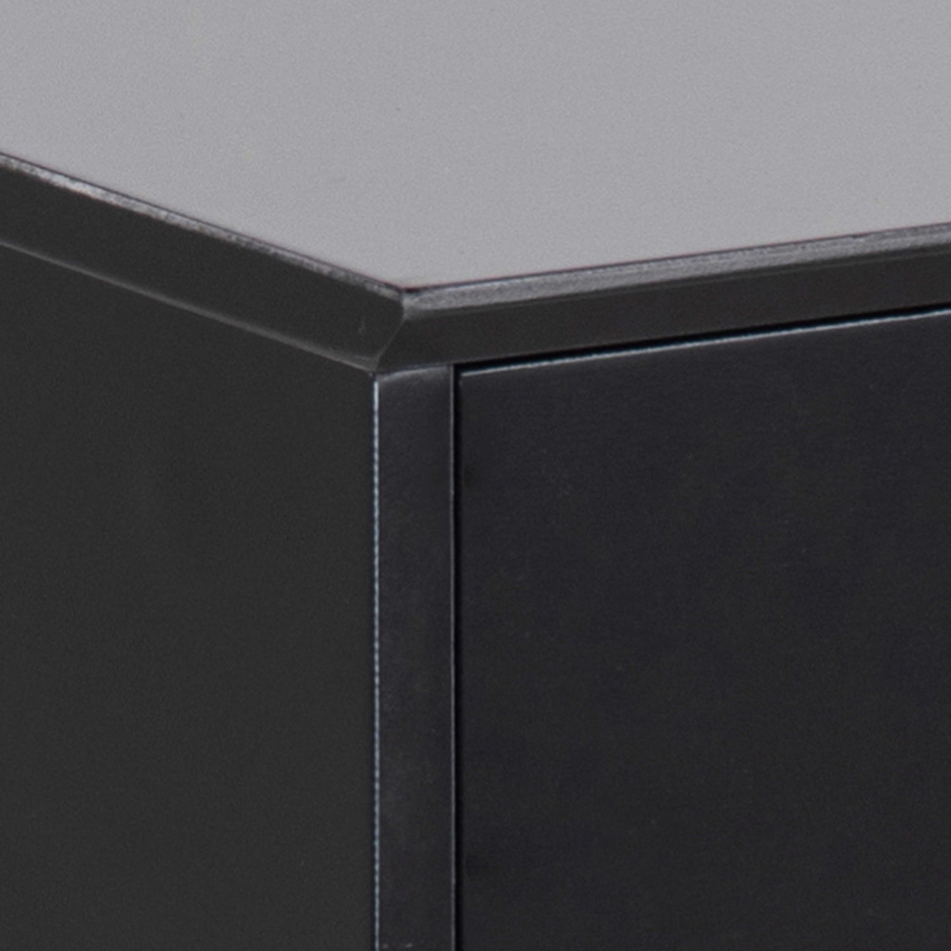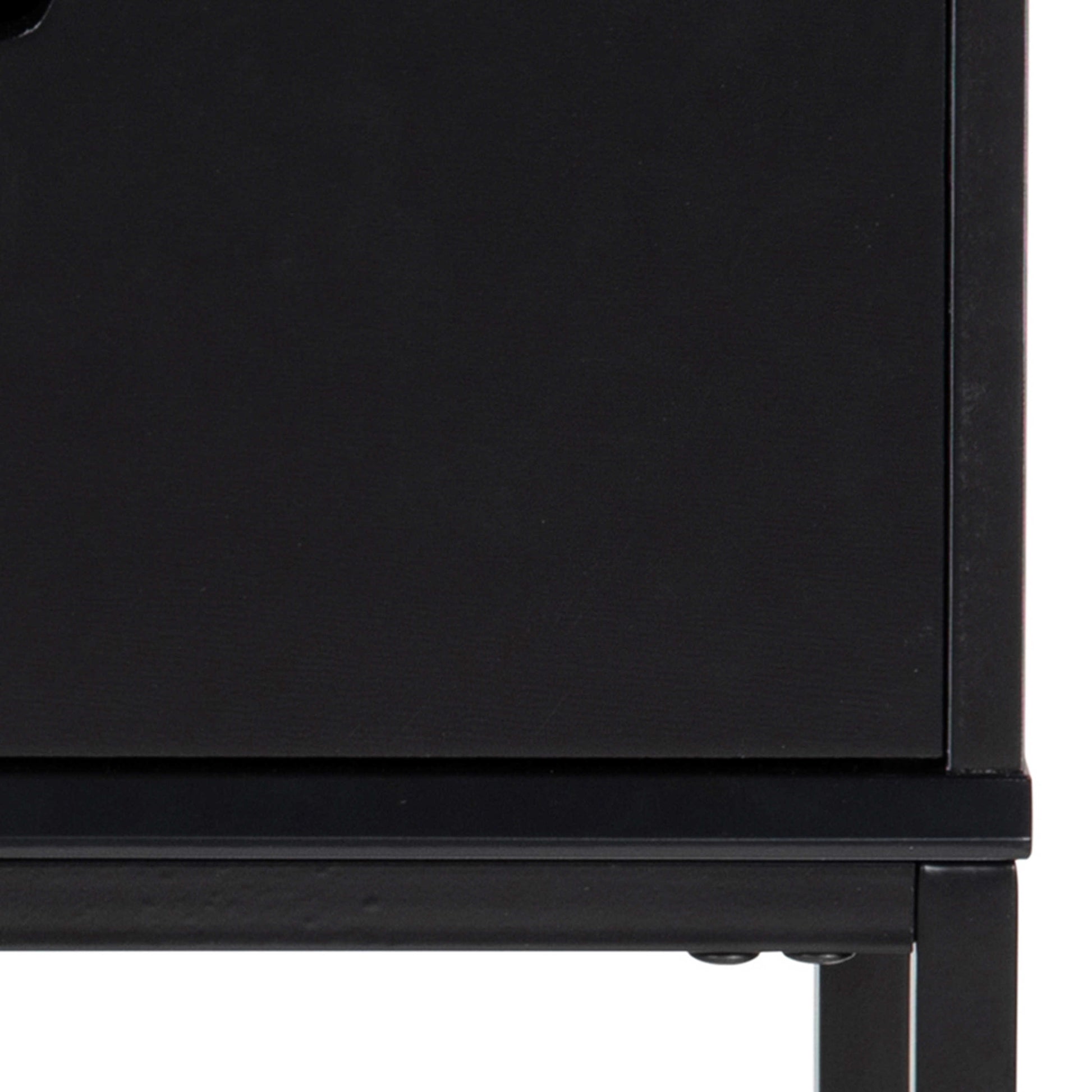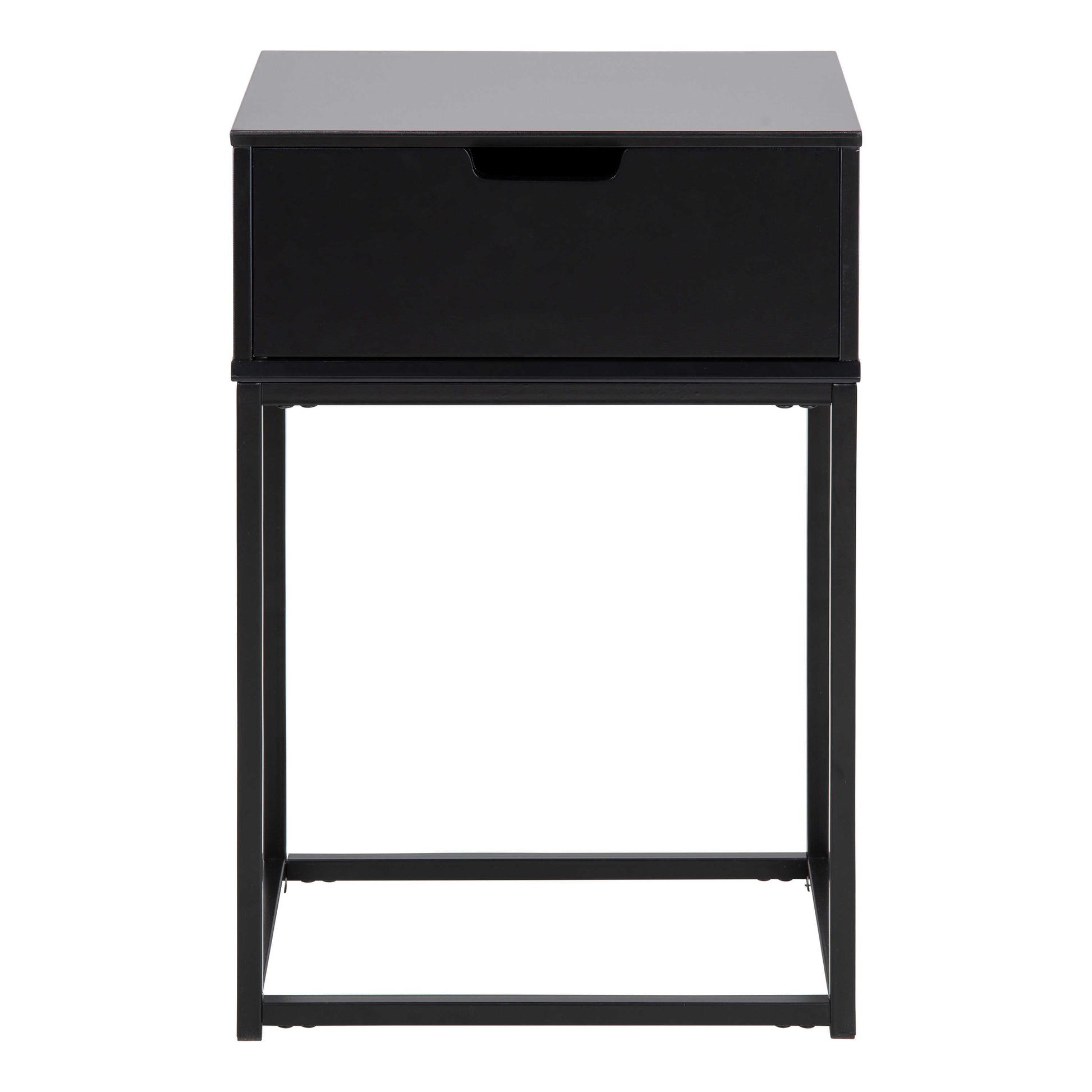 Bring a cool contemporary edge to your bedroom with this bedside table that pairs a black MDF top and drawer with a matt black steel base. The clean lines give it a calm modern feel while the integrated handle adds a subtle crafted detail. It settles neatly beside the bed, offering a relaxed place to keep a book, glasses or a late night drink within easy reach.