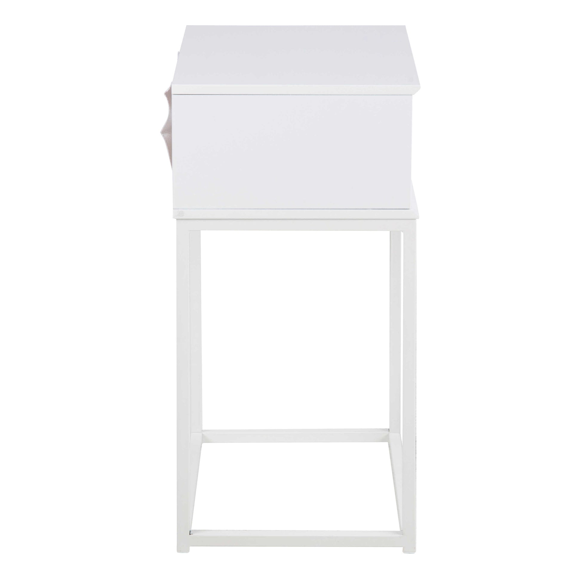 Bring a fresh modern vibe to your room with this bedside table that pairs a white UV painted MDF top and drawer with a matt white steel base. The look is clean and collected, adding a calm brightness beside the bed while giving you an easy spot for nightly bits like a book or a glass of water. Its gentle lines keep the space feeling airy and uncluttered, settling in with a relaxed contemporary spirit.