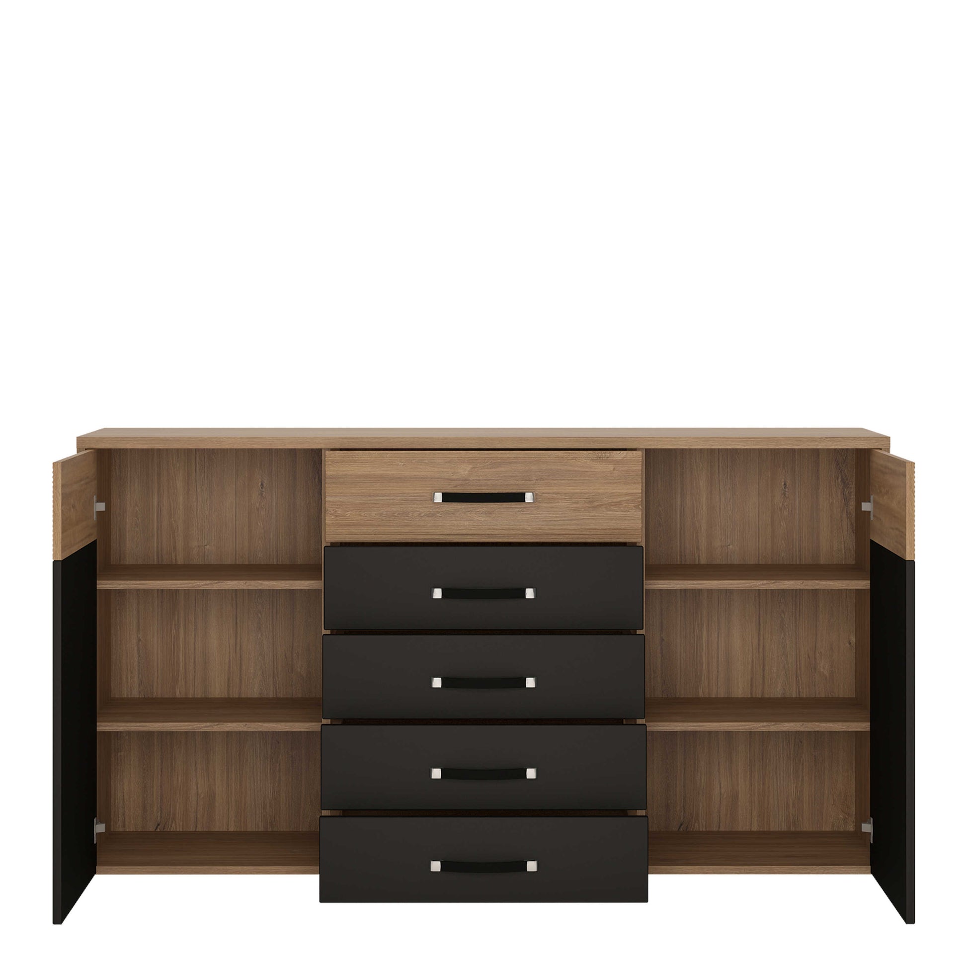 Dunedin Black and Natural Oak Effect Wide Cupboard 2 Door 5 Drawers