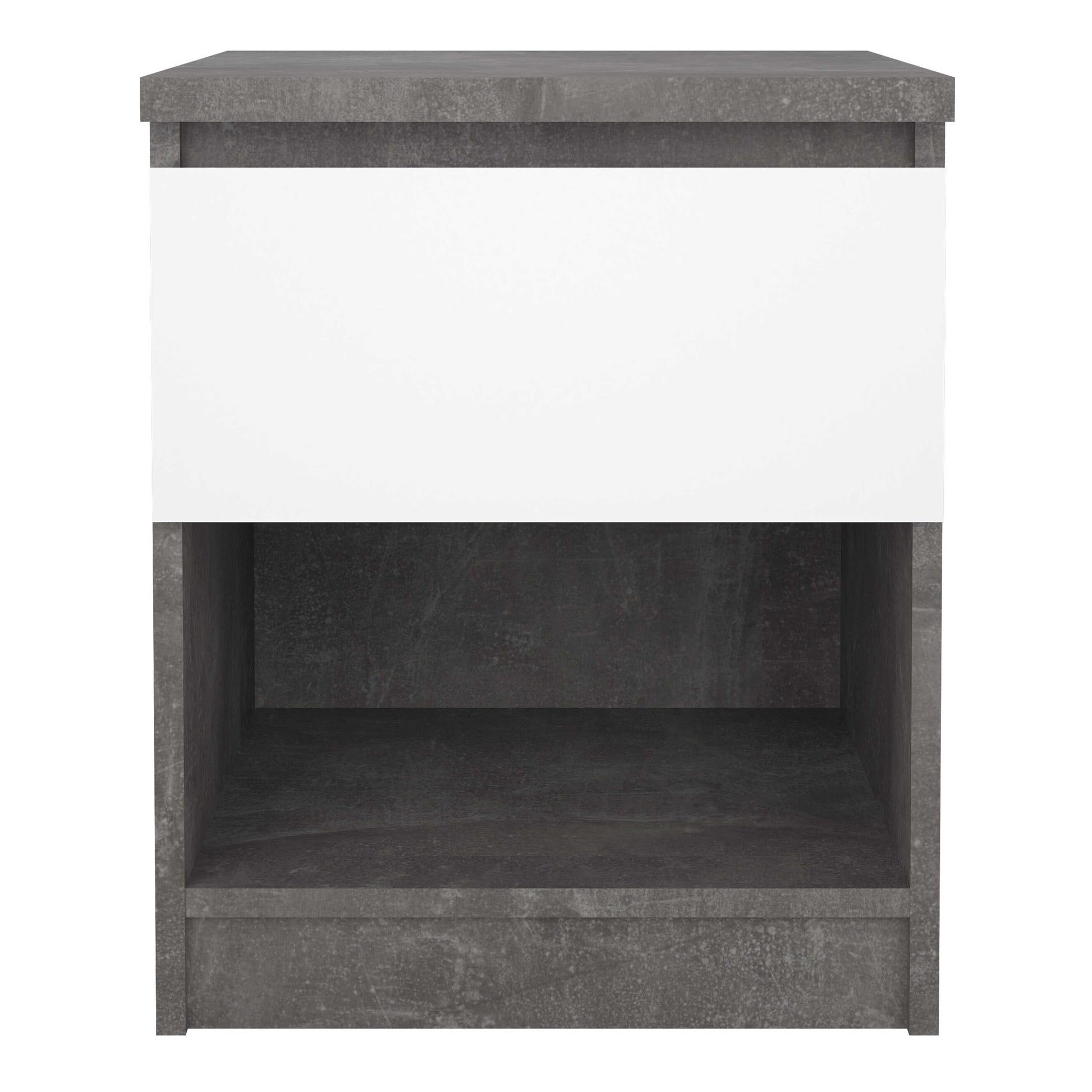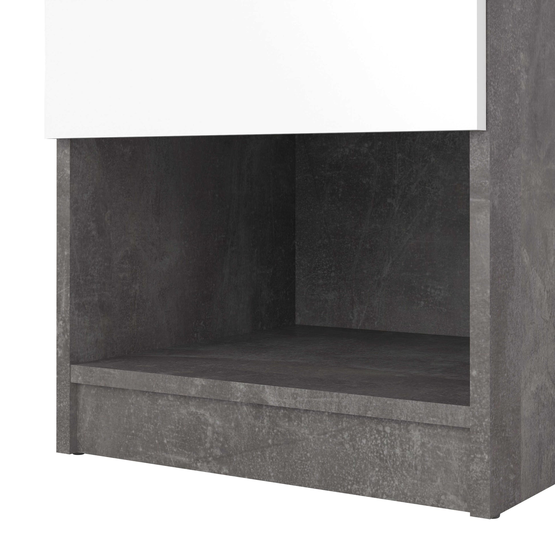 Budapest Concrete Effect and White Wooden Bedside Table 1 Drawer 1 Shelf
