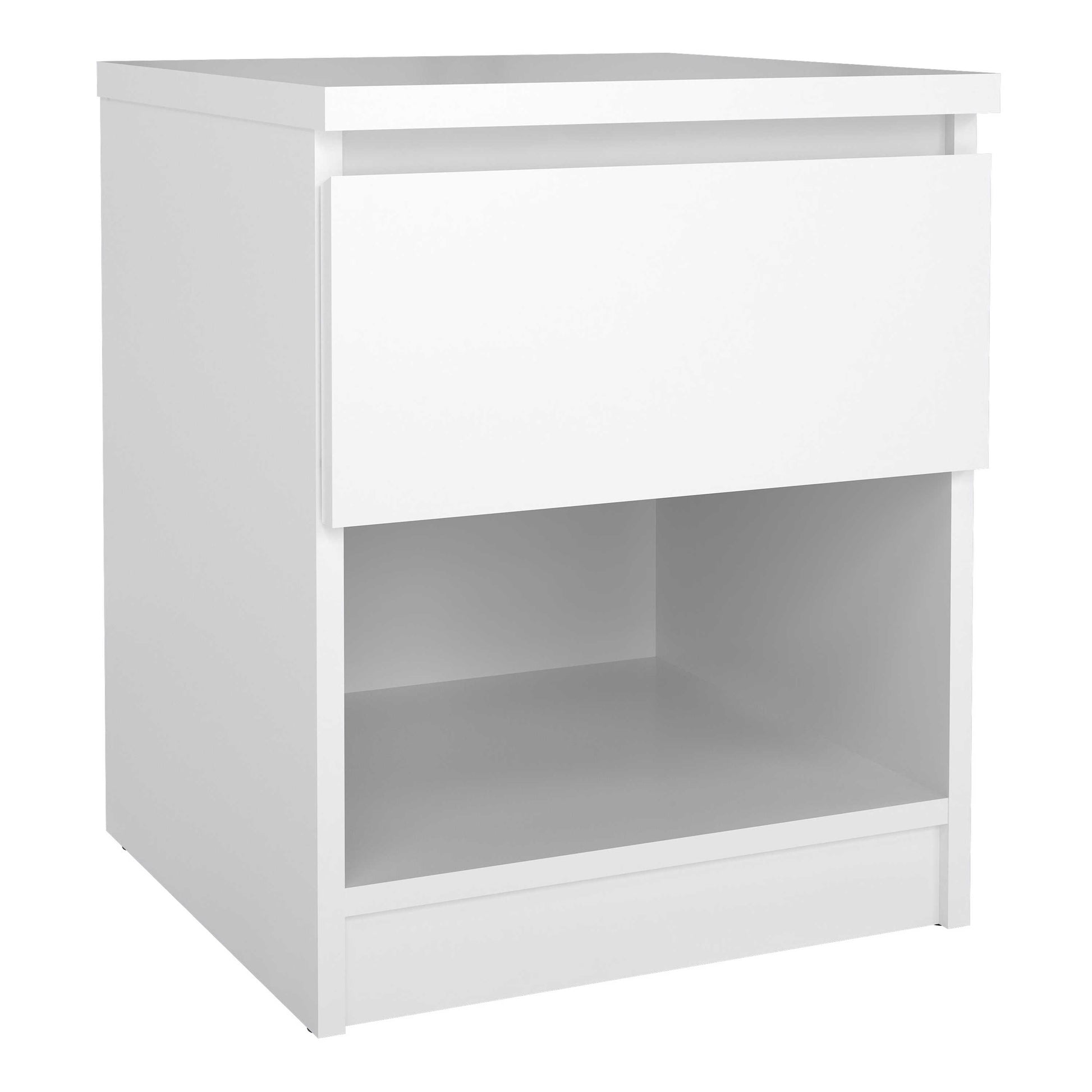 Budapest White Wooden Bedside Table 1 Drawer 1 Shelf