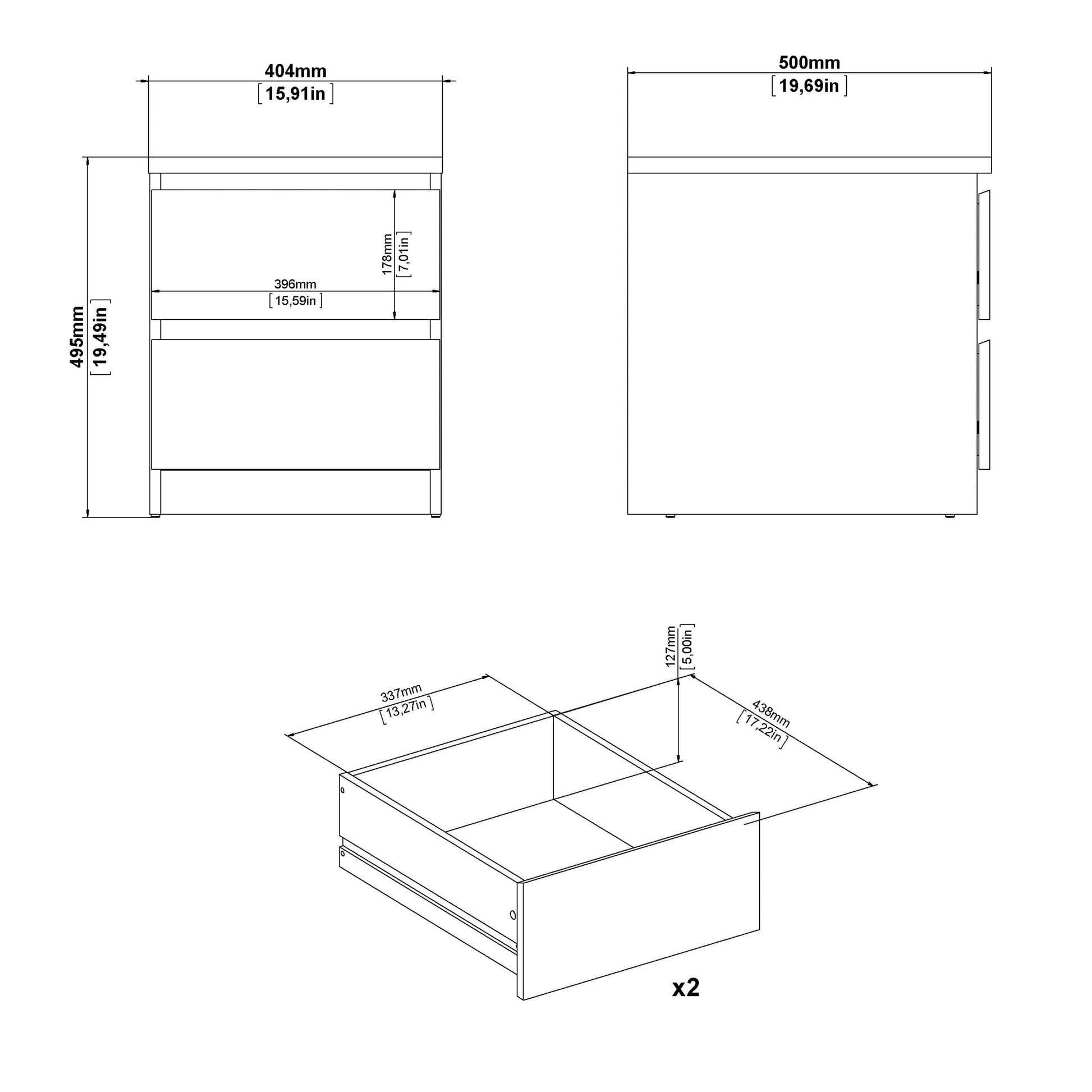 Budapest Natural Oak Effect Wood Bedside Table 2 Drawers