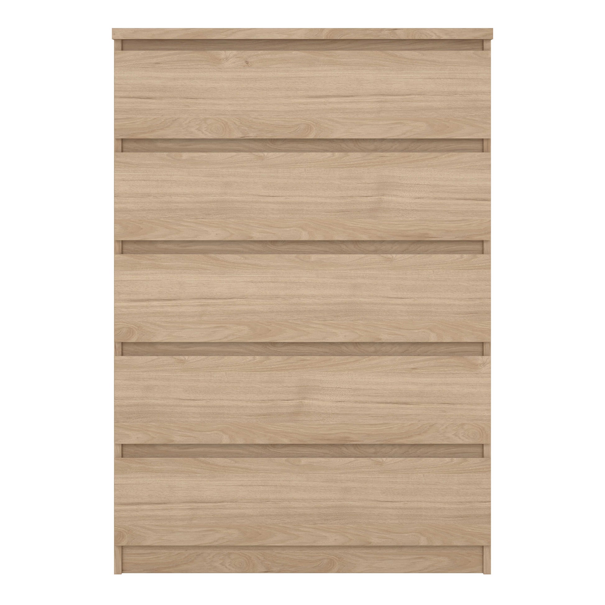 Five smoothly gliding drawers provide ample room for folded clothing and accessories, making everyday organisation simple. Crafted from durable laminated board and sustainable materials, it resists scratches and heat while maintaining its refined look. This piece offers a thoughtful mix of practicality, elegance, and long lasting quality.