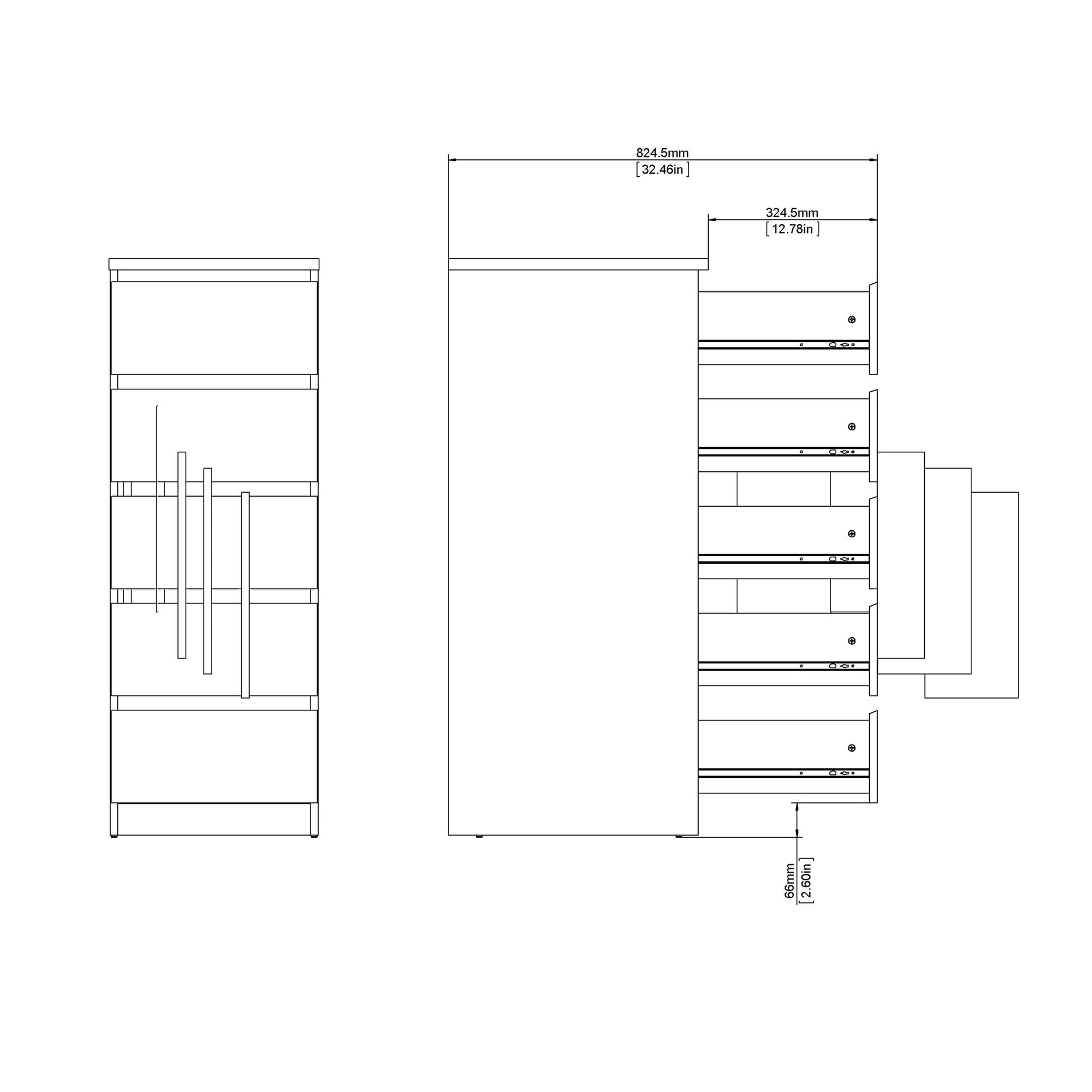 Five smoothly gliding drawers provide tidy space for clothing and everyday essentials, making organisation simple in smaller homes. Crafted from durable laminated board and sustainable materials, it resists scratches and moisture while maintaining its refined look. This piece delivers practical storage with understated modern character.