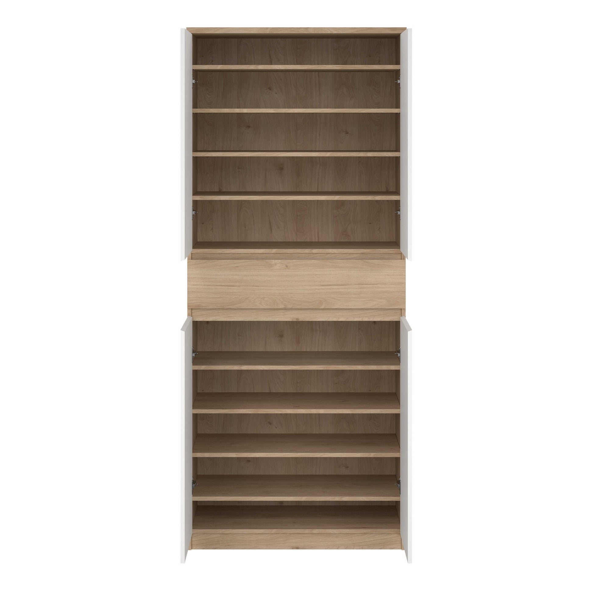 Budapest White and Natural Oak Effect Wood Shoe Cabinet 4 Doors 1 Drawers