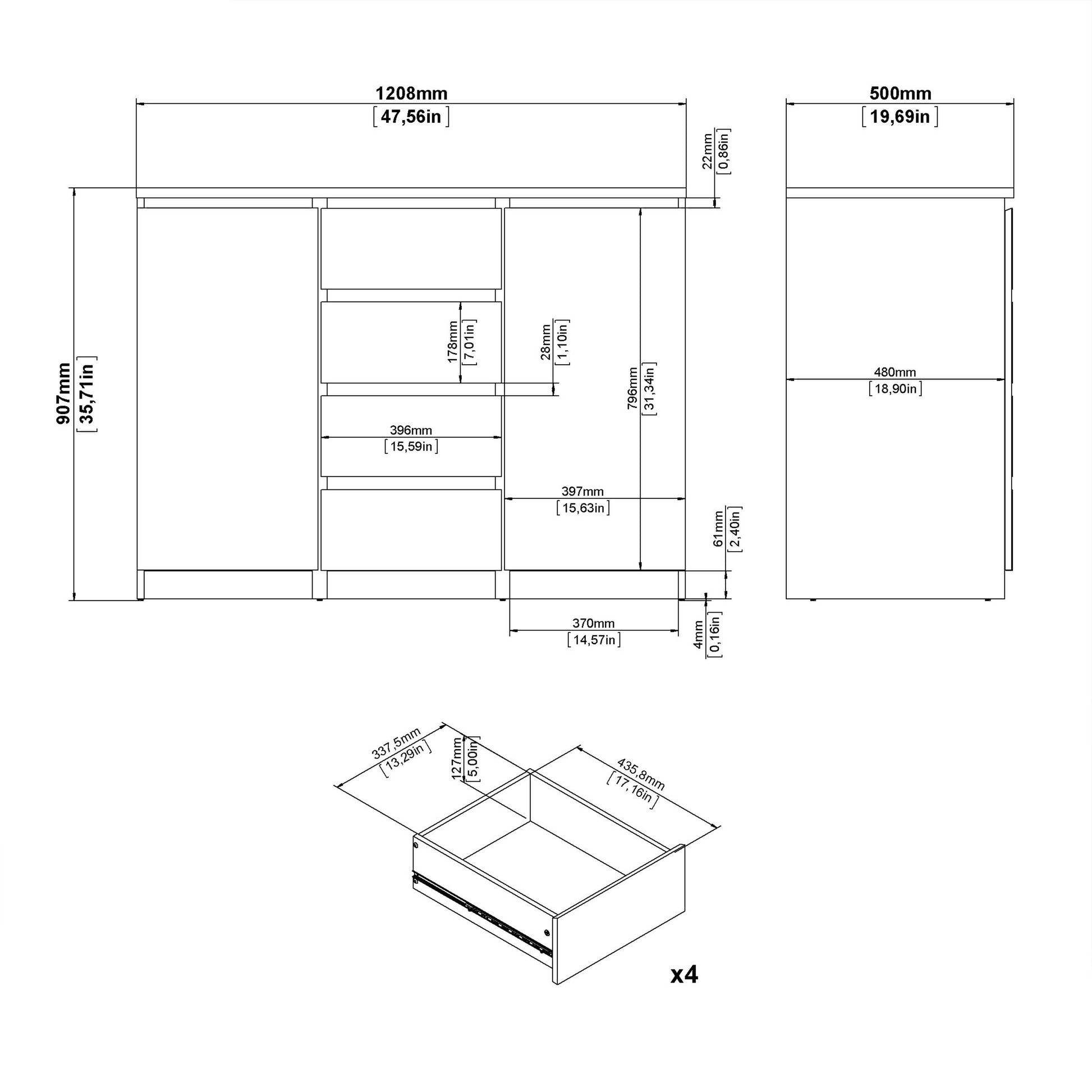 Budapest Matt Black Wooden Sideboard 4 Drawers 2 Doors