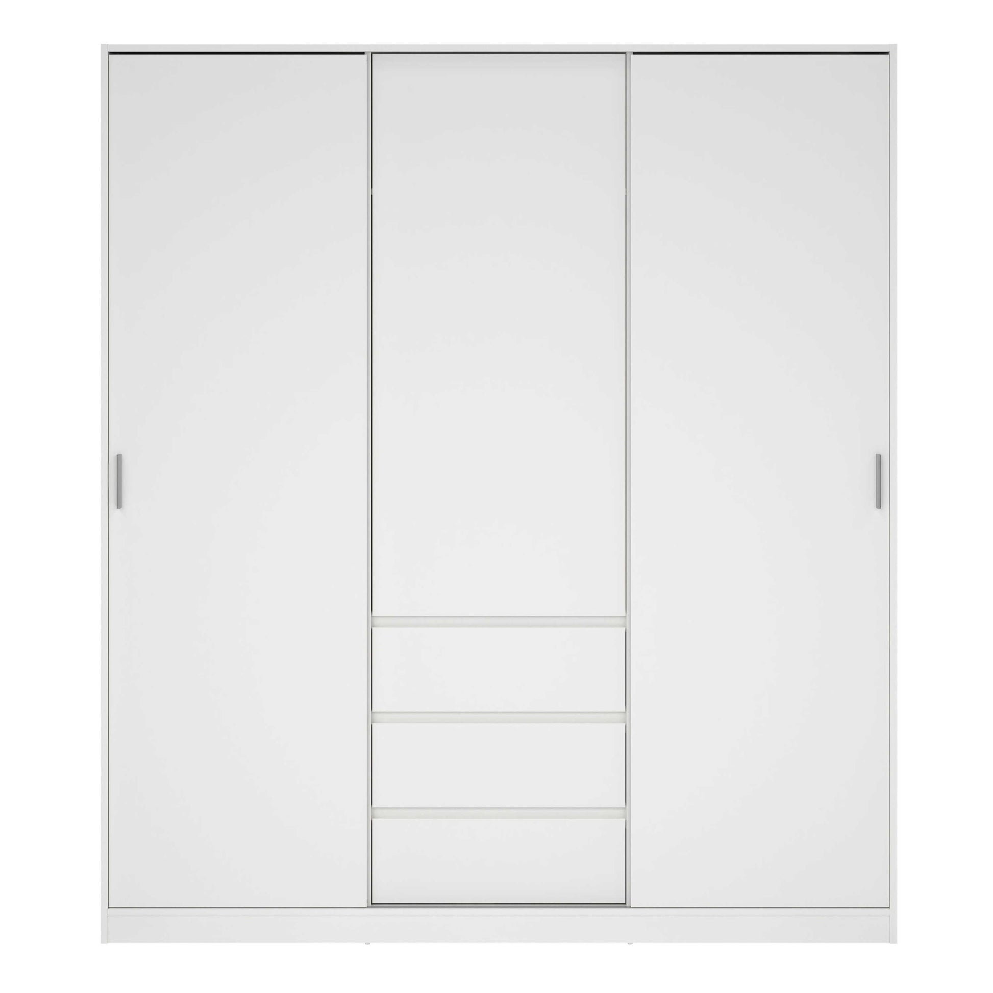 Budapest White Wooden Wardrobe 3 Doors 3 Drawers
