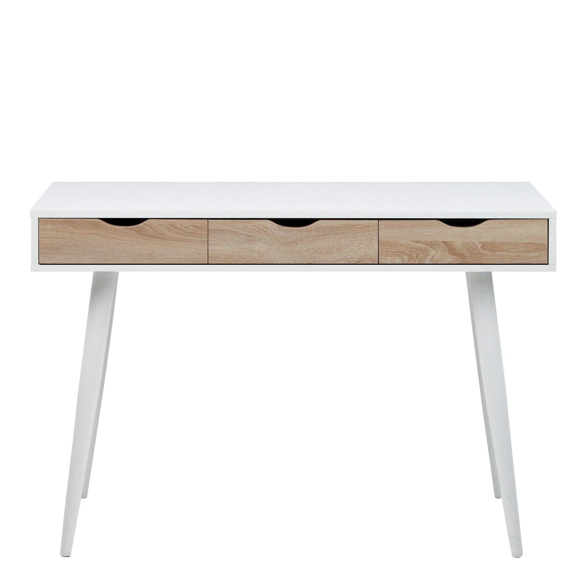 Dresden White and Natural Sonoma Wood Office Desk 3 Drawers